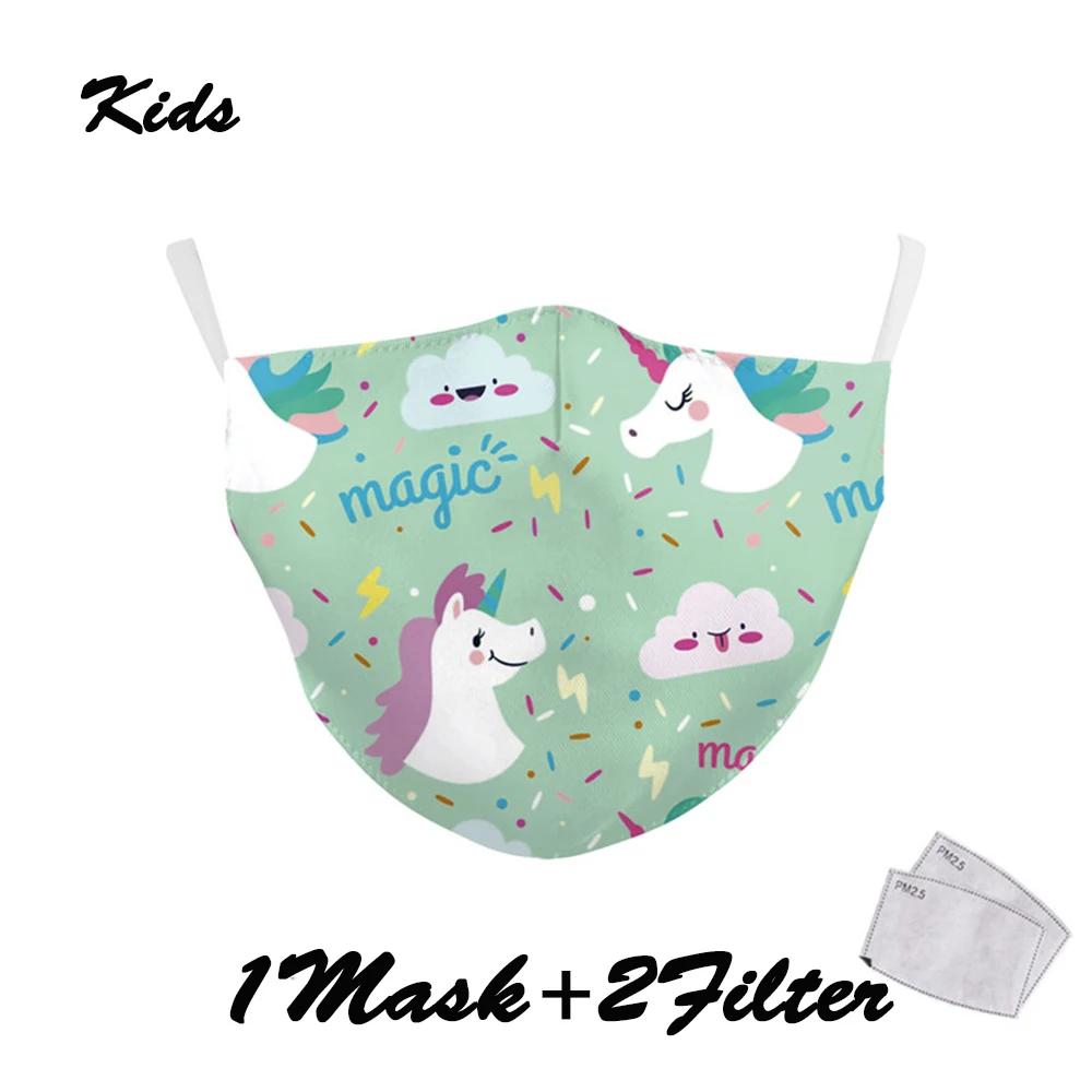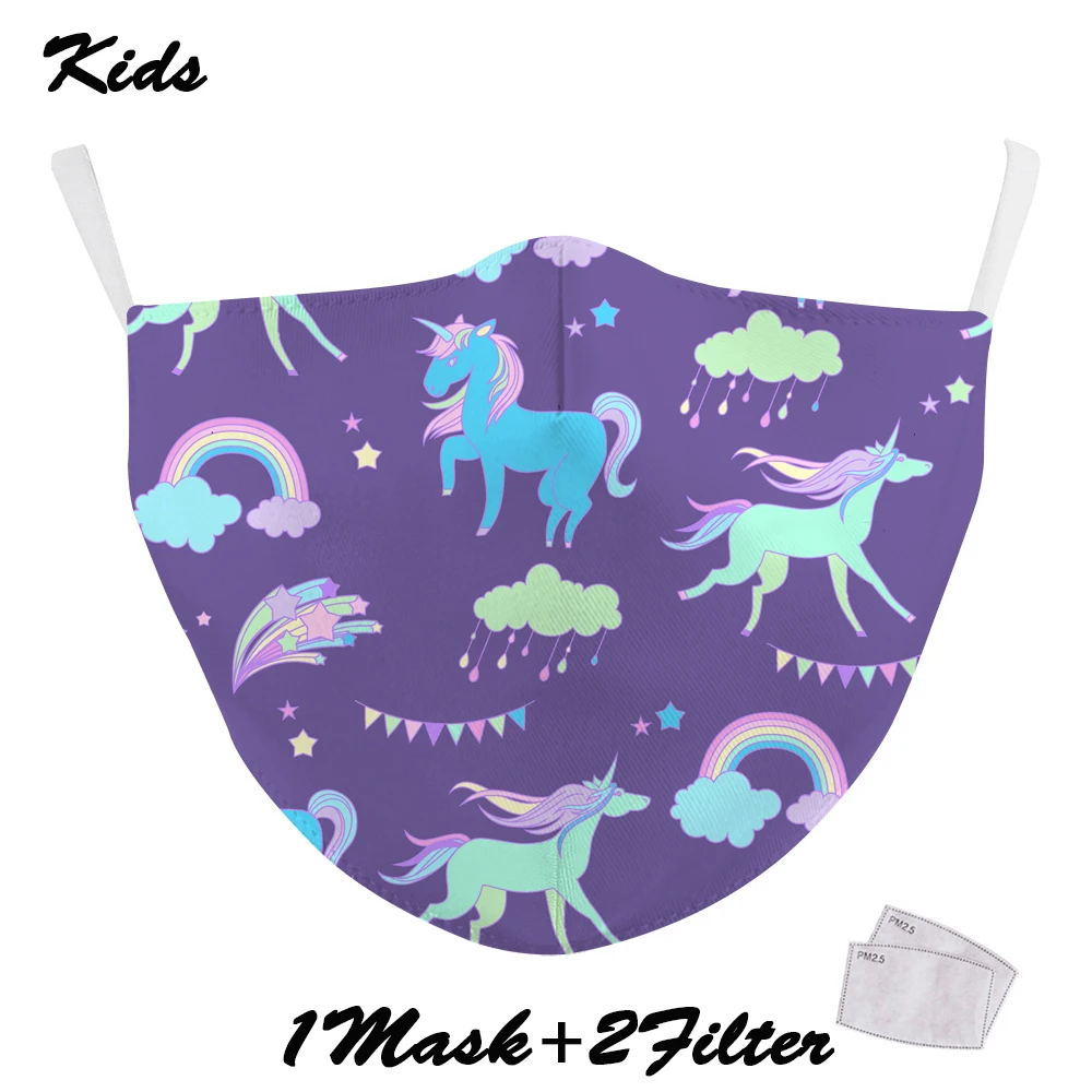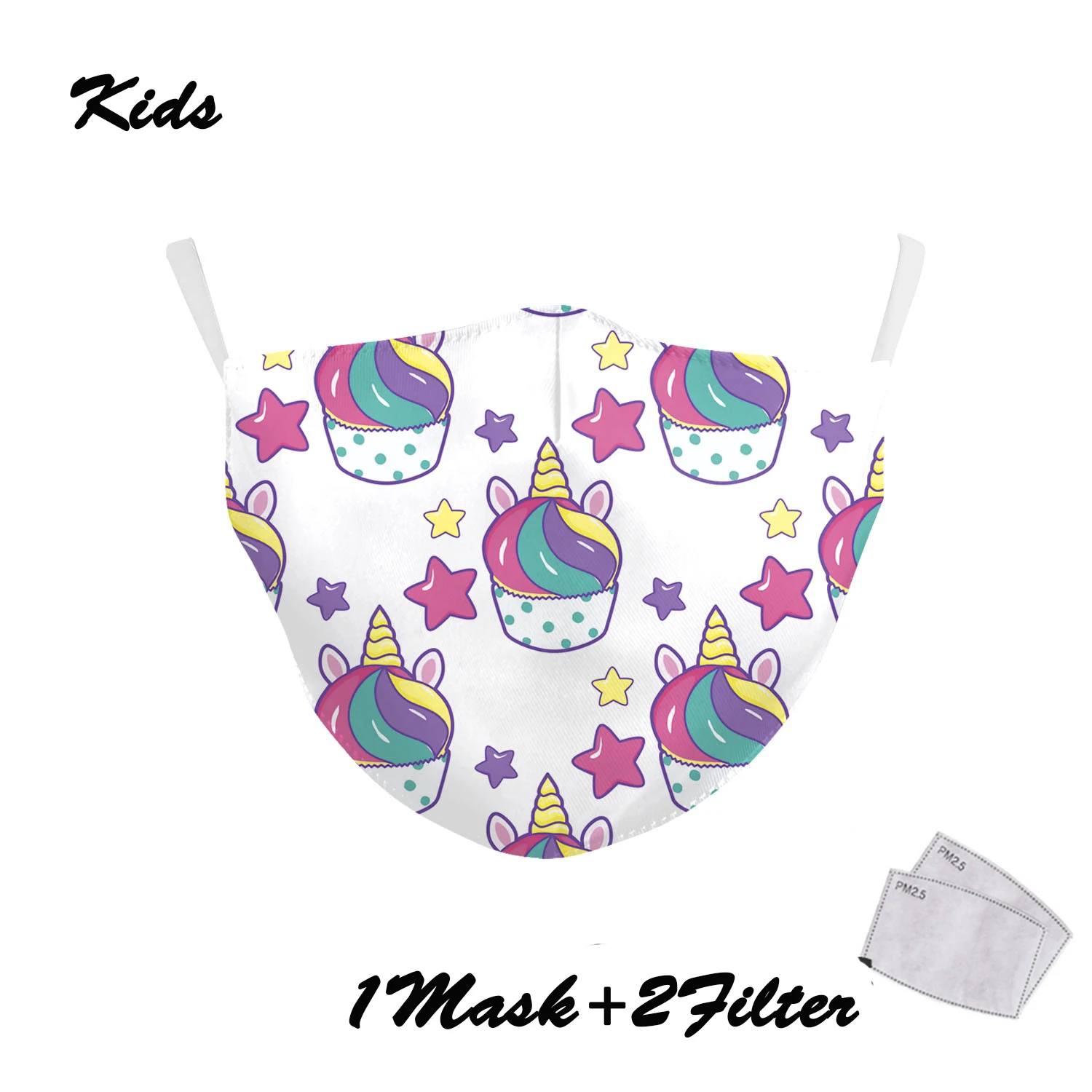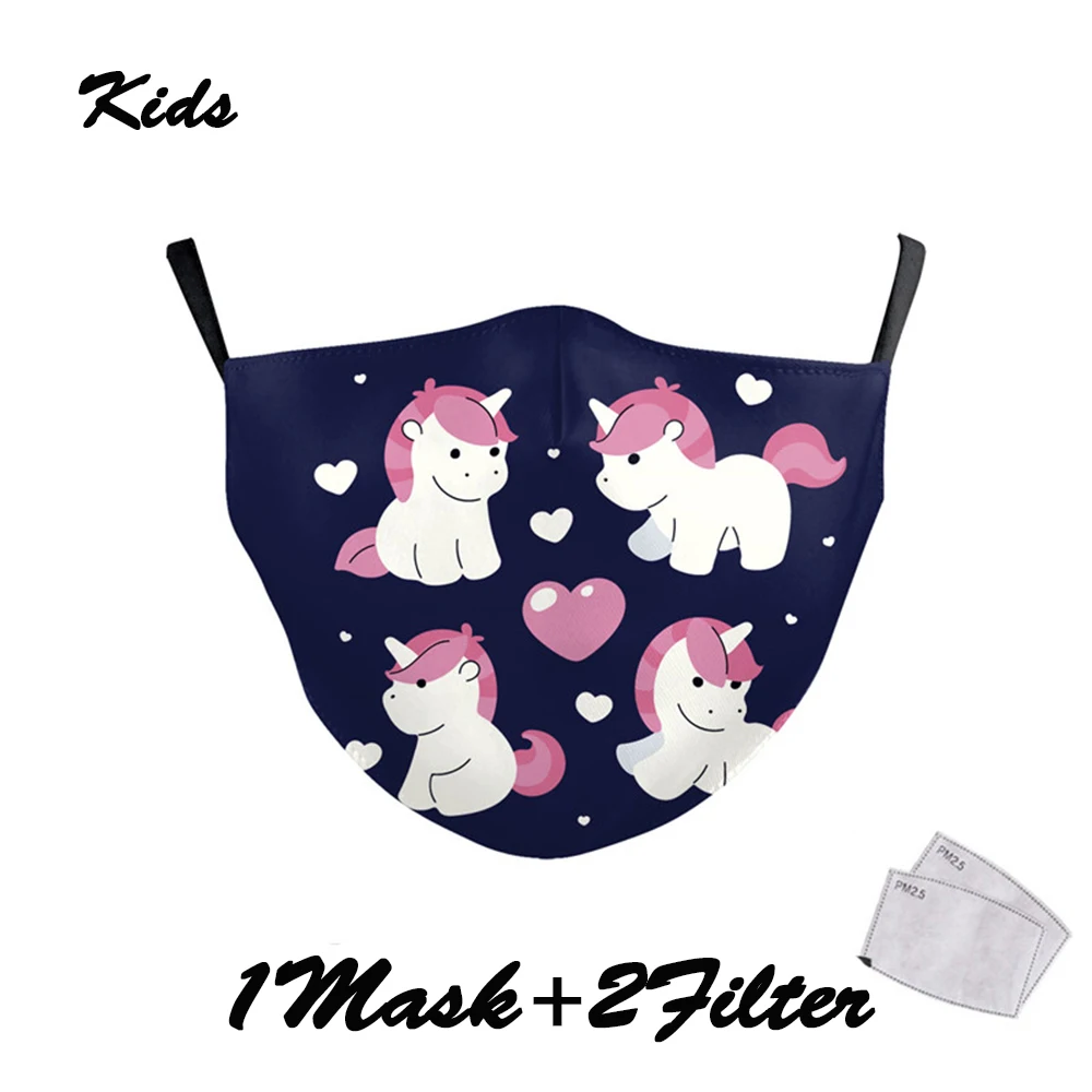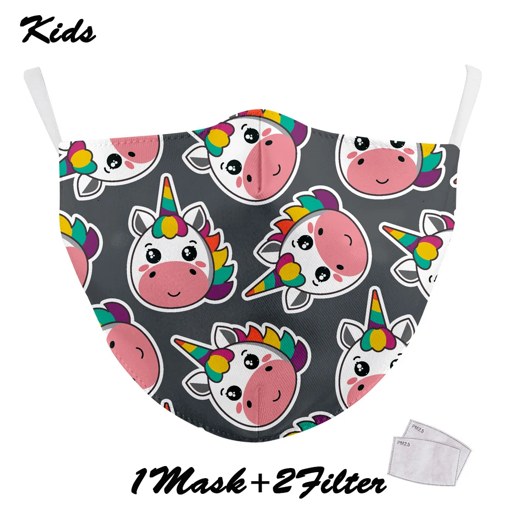 Маска детская многоразовая моющаяся с принтом в виде мультяшного единорога, животного