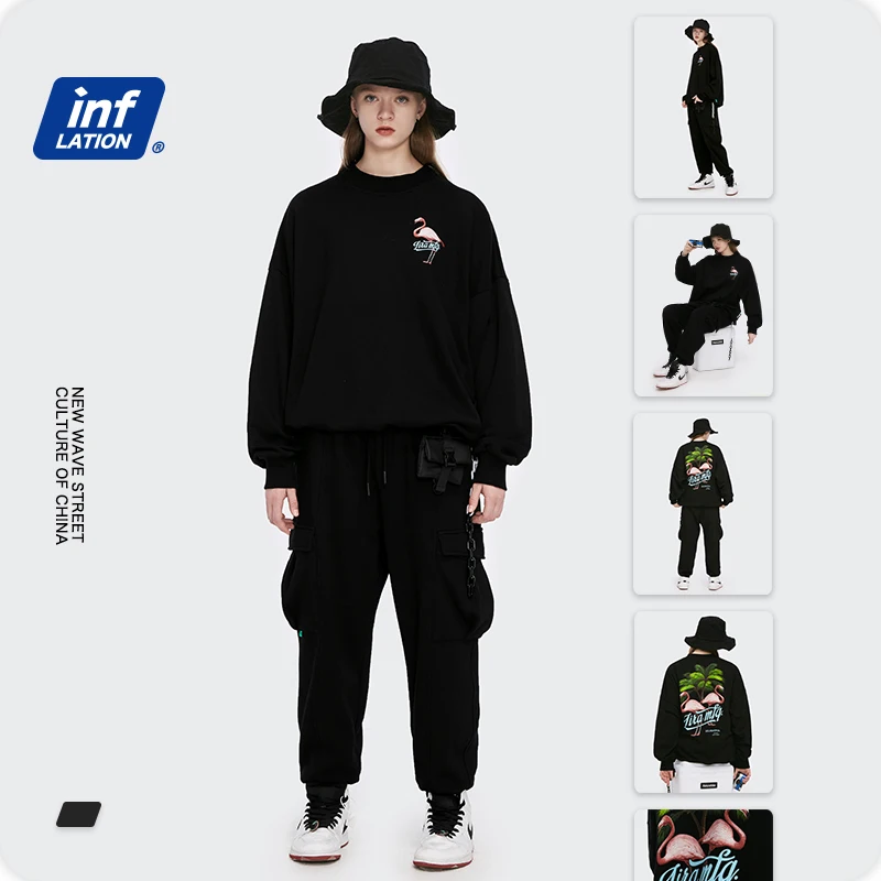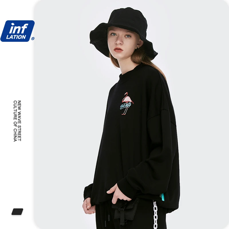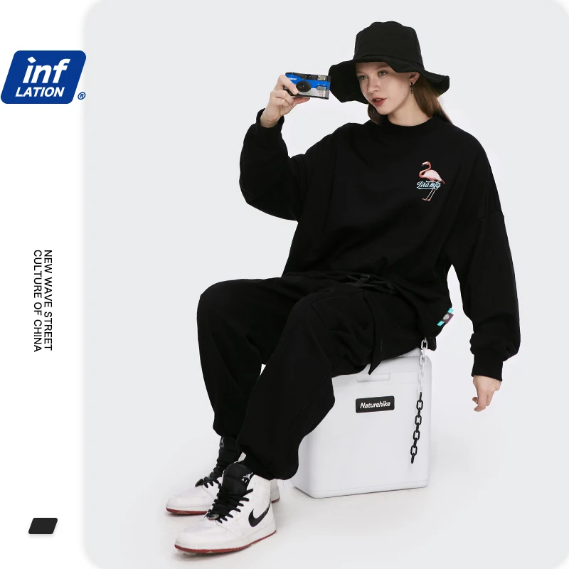 INFLATION Basic Harajuku свитшот для пары уличная мода 2020 Новый оверсайз хип-хоп черный Свитшот мужской Повседневный пуловер 1383W