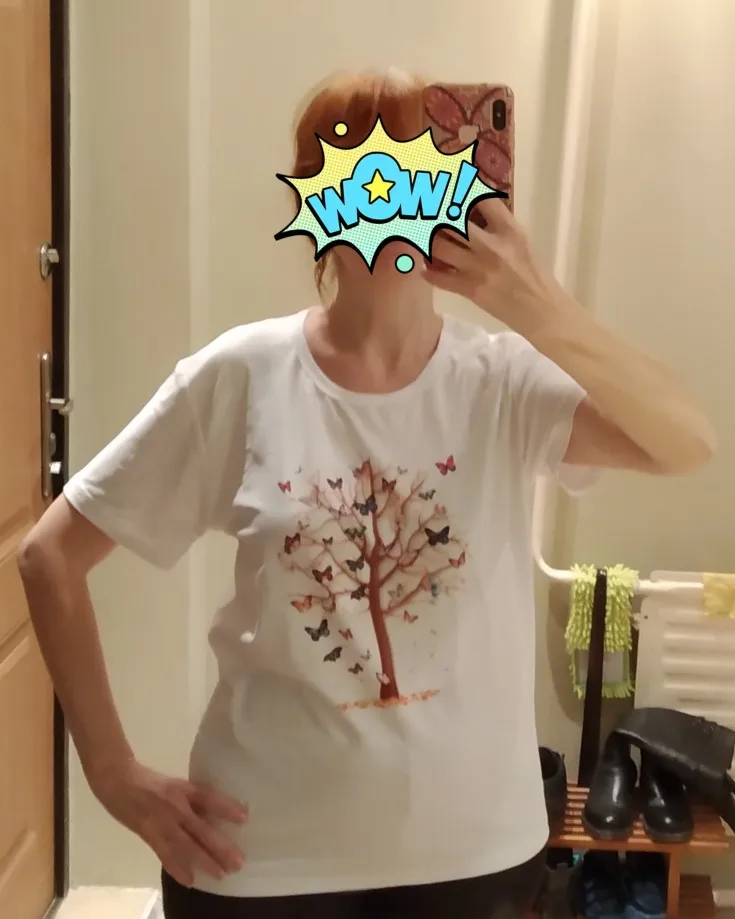 Быстрая доставка. На размер ОГ 90 немного большая ХL, можно было на размер меньше брать. Майка приятная на ощупь, но не хлопок а плотная синтетика. Подойдёт на весну или осень, летом я думаю будет в ней жарко. Рисунок немного отличается от фото продавца, но все равно симпатичный.