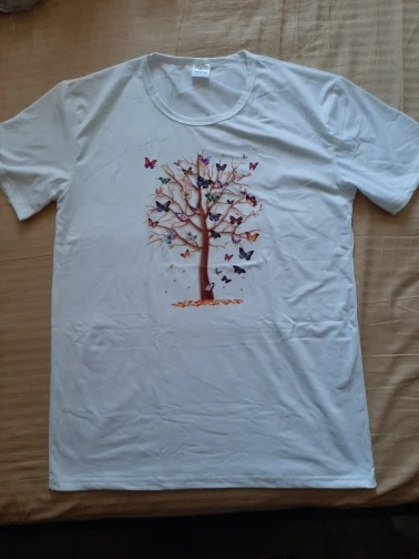 Футболка очень красивая, для размера я делаю м, я взял XL, он покрывает бедра, я измеряю 1,60, это идеально подходит для меня!