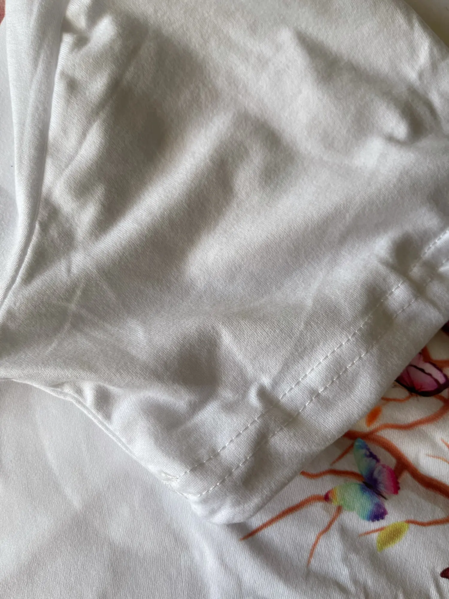 Классная футболка. Кристально белая, качество приятное, сшита аккуратно, я довольна покупкой, единственное что, так это размер я бы хотела меньше, я люблю когда такие вещи сидят чуть плотнее, но это не критично, фото соответствует товару. Продав у огромное спасибо позже добавлю ОТЗЫВ)