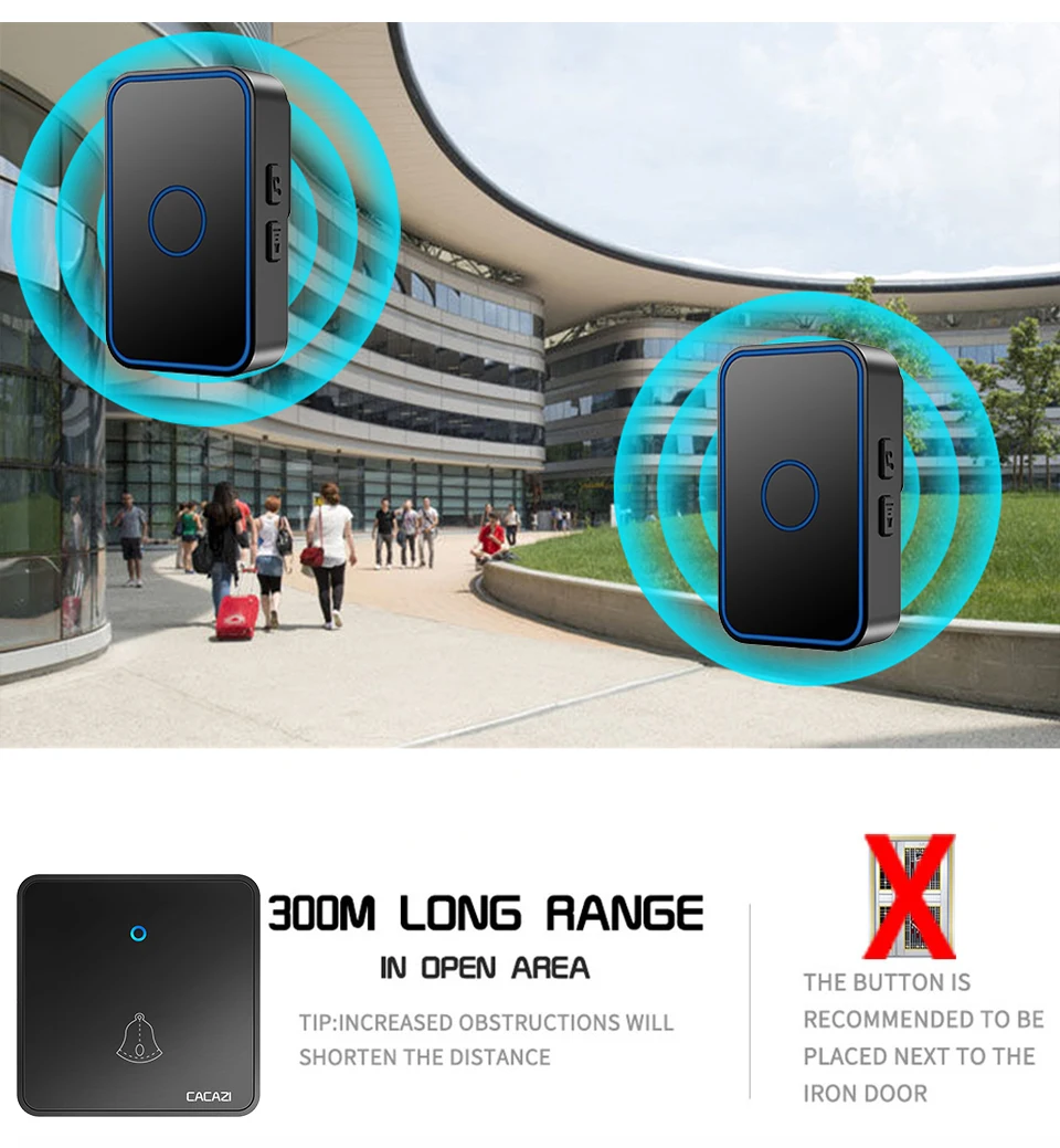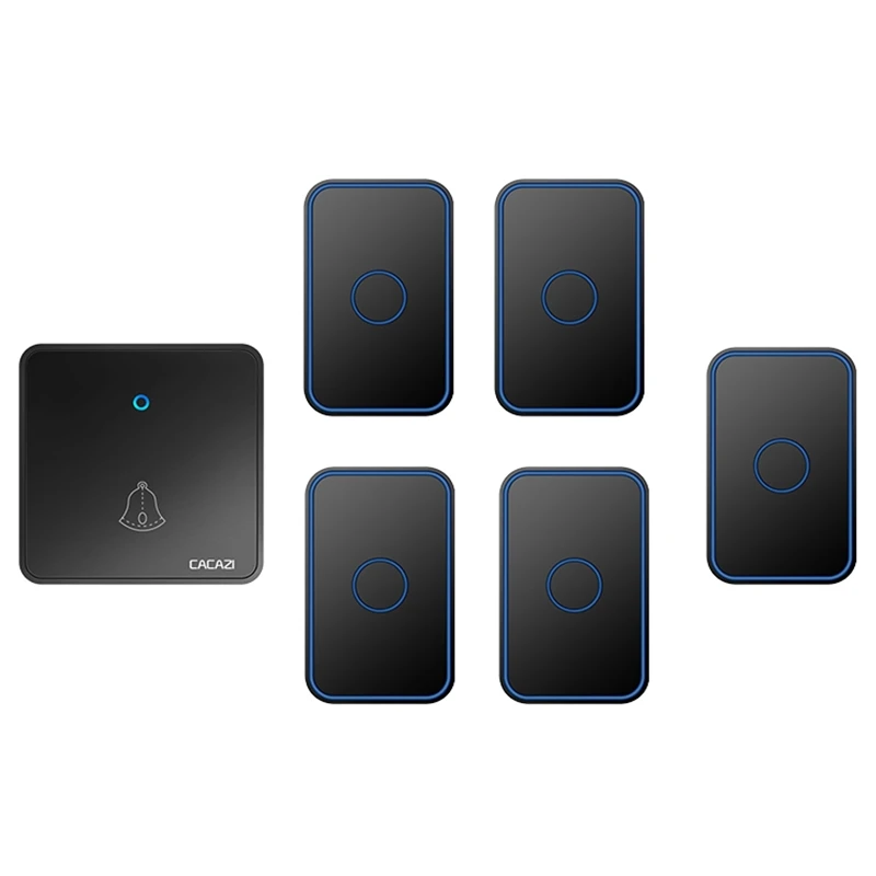 Умный беспроводной дверной звонок CACAZI, 60 звонков, 0-110 дБ, водонепроницаемая Домашняя Беспроводная вспышка, дверной звонок, вилка стандарта США, ЕС, Великобритании, 1 кнопка, 5 приемников