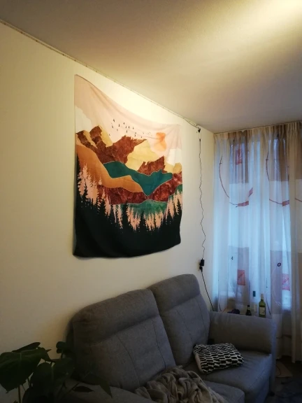 Гобелен был тоньше, чем ожидалось, поэтому моему маленькому брату это не очень нравится. Я не против. Гобелен поставляется с маленькими аппликаторами, которые могут прилипать к стене, чтобы вы могли повесить его. Они постоянно падают и не прилипают к стене (может быть из-за моих обоев, или потому, что они просто не работают так хорошо). Качество в том, что я ожидала и в порядке. Я бы настоятельно рекомендовал этого продавца, потому что он пришел около 3 недель. Довольно быстрая доставка.