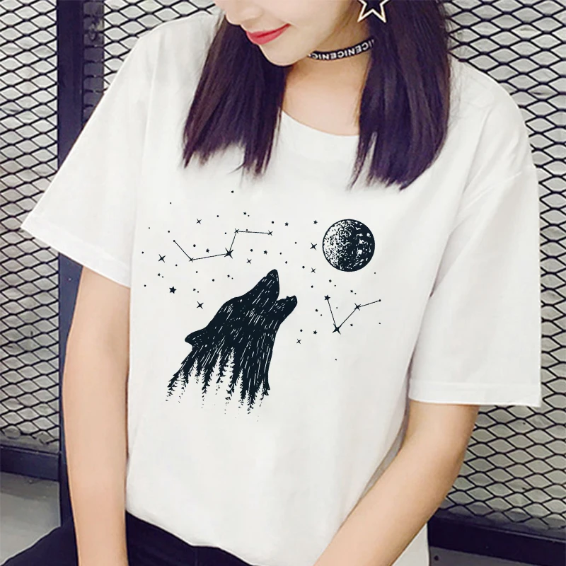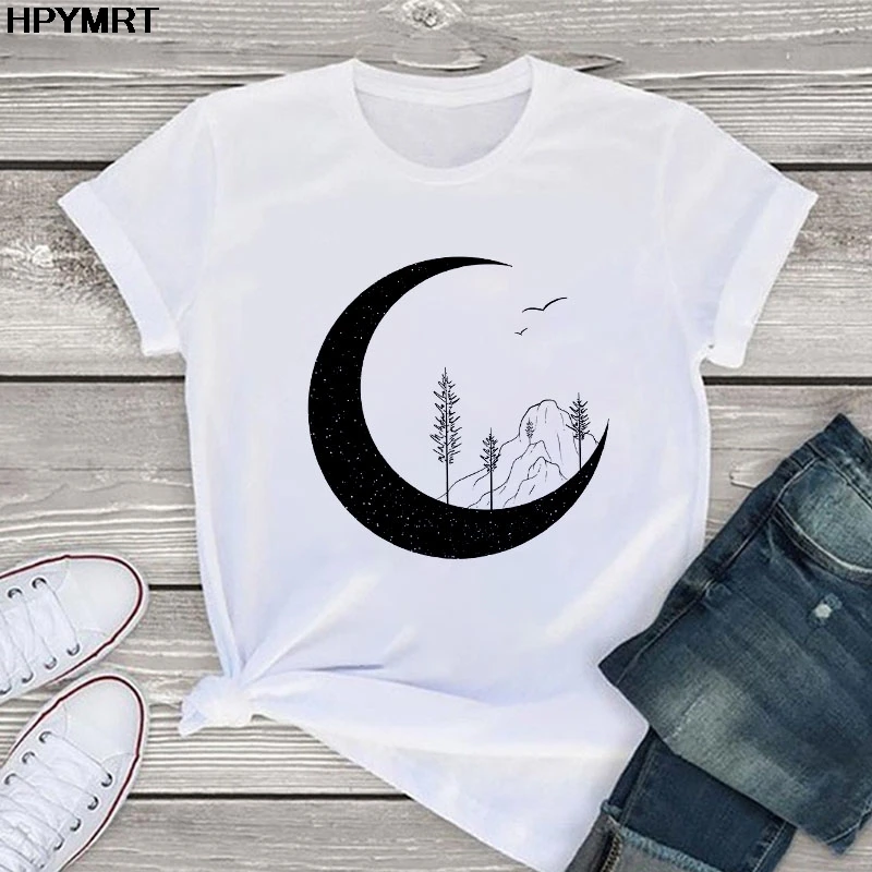 Женская футболка с эстетическим принтом Луны, модная футболка Harajuku, Повседневная белая футболка для девочек, новинка 2020, летняя женская футболка, одежда