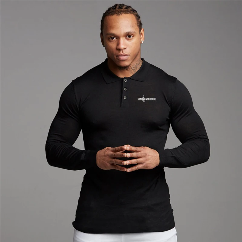 Мужская хлопковая рубашка-поло с длинным рукавом, в спортивном зале