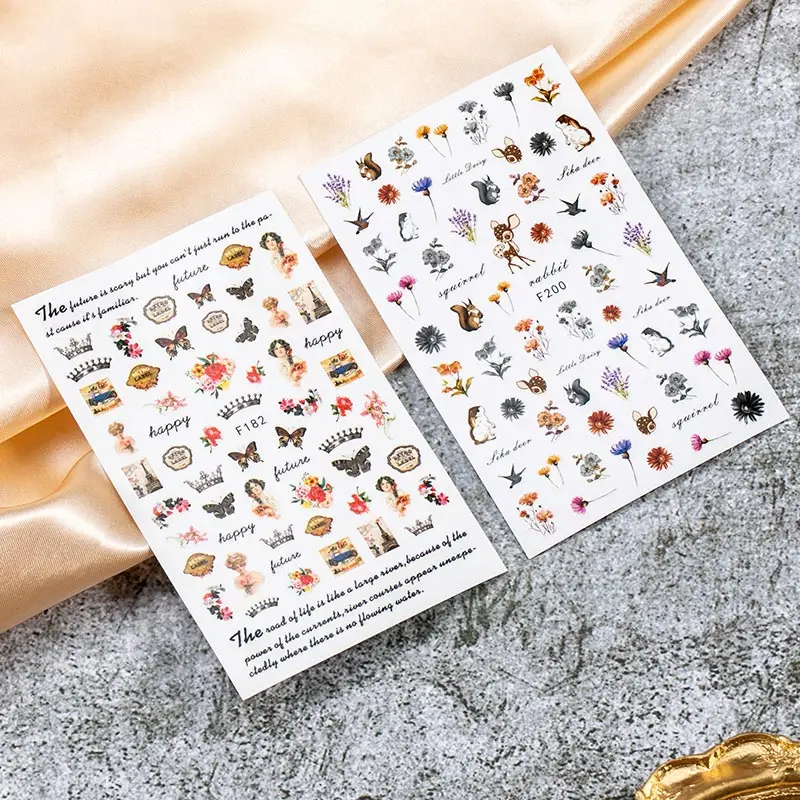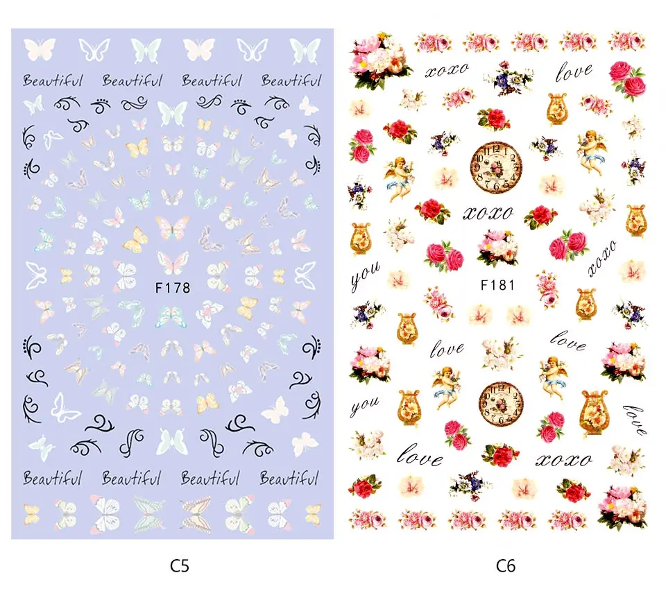 Наклейки для ногтей, с рисунком бабочки, цветка, небольшие свежие буквы, декоративные наклейки для ногтей сделай сам, 2021