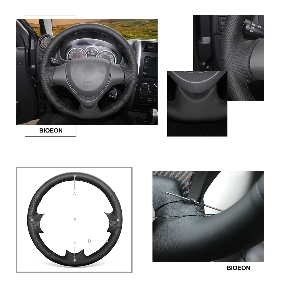 Ручное шитье, черная пленка из искусственной кожи Чехлы рулевого ко...