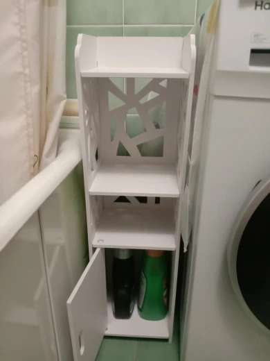 Посылка пришла целой, доставили быстро, продавец общительный собирается шкаф как пазл, затем закручивается саморезами с боков материал судя по всему-пластик, хотя напоминает картон(поймёте о чём я, если заказывать будете) шкафчик очень лёгкий, встал хорошо, размер очень удачный, достаточный, чтоб поставить всякие моющие средства не напрягаясь по прочности - тоже нормально, пластик не прогибается(но это не значит, что поставив 10кг вы не сломаете полочку) по поводу минусов: один из краёв "пазла" был разбит, но я аккуратно подровнял ножиком и всё нормально пришлось зашкурить края, потому что они были неровными