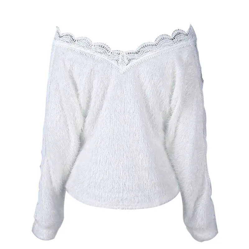 Женский кружевной свитер с V-образным вырезом и длинным рукавом