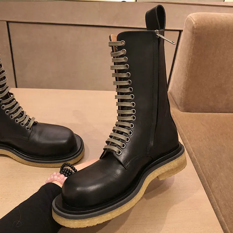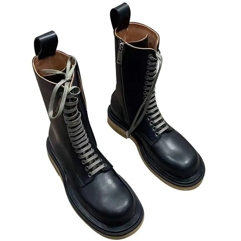 Новинка Осень-зима 2022, ботинки мартинсы на толстом каблуке со шнуровкой, женские ботинки в британском стиле средней длины с боковой молнией для женщин