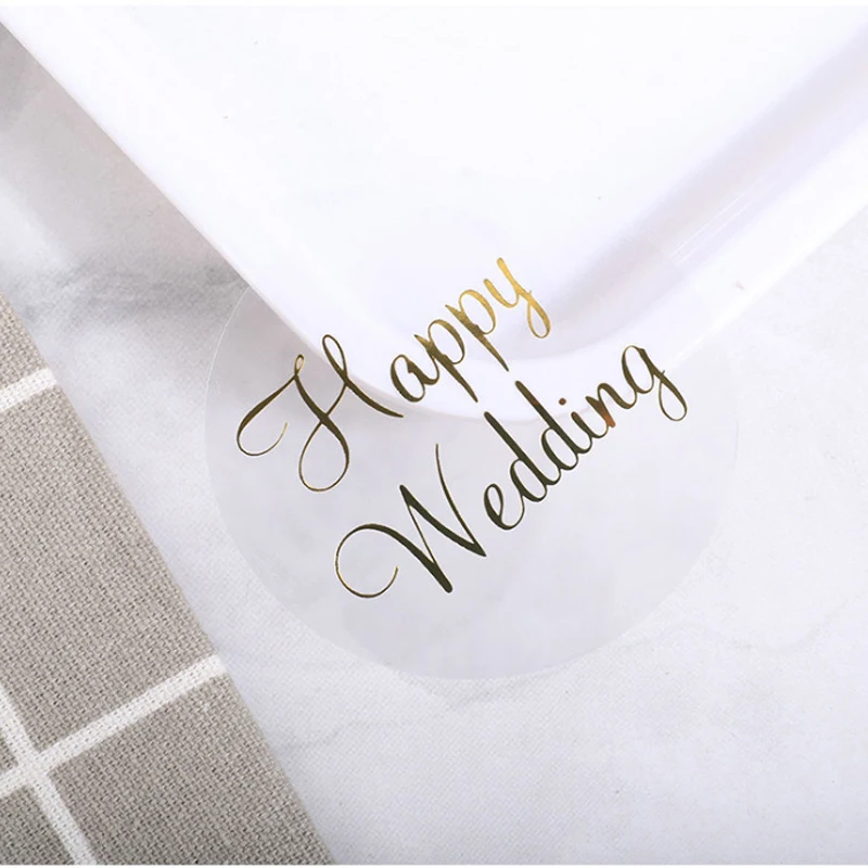 60 шт.упак. бронзового цвета прозрачные Круглые Горячего Тиснения HAPPY WEDDING наклейка для запечатывания пригласительный билет вечерние стальная труба большого диаметра 6 см