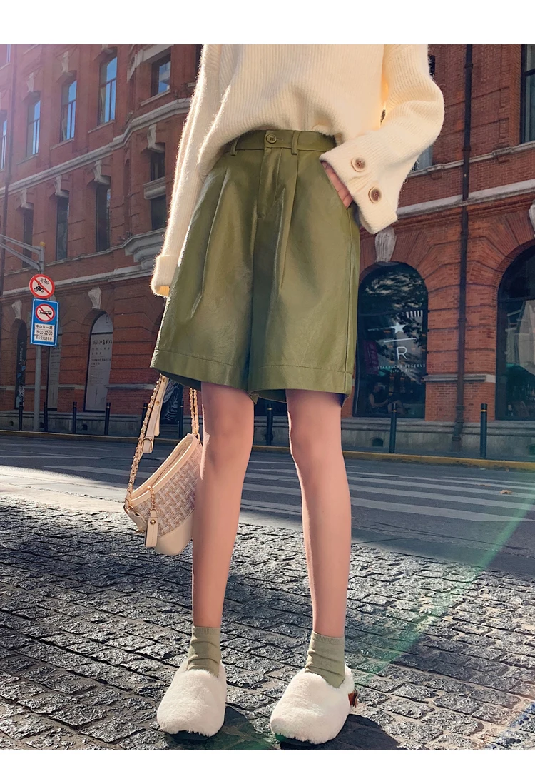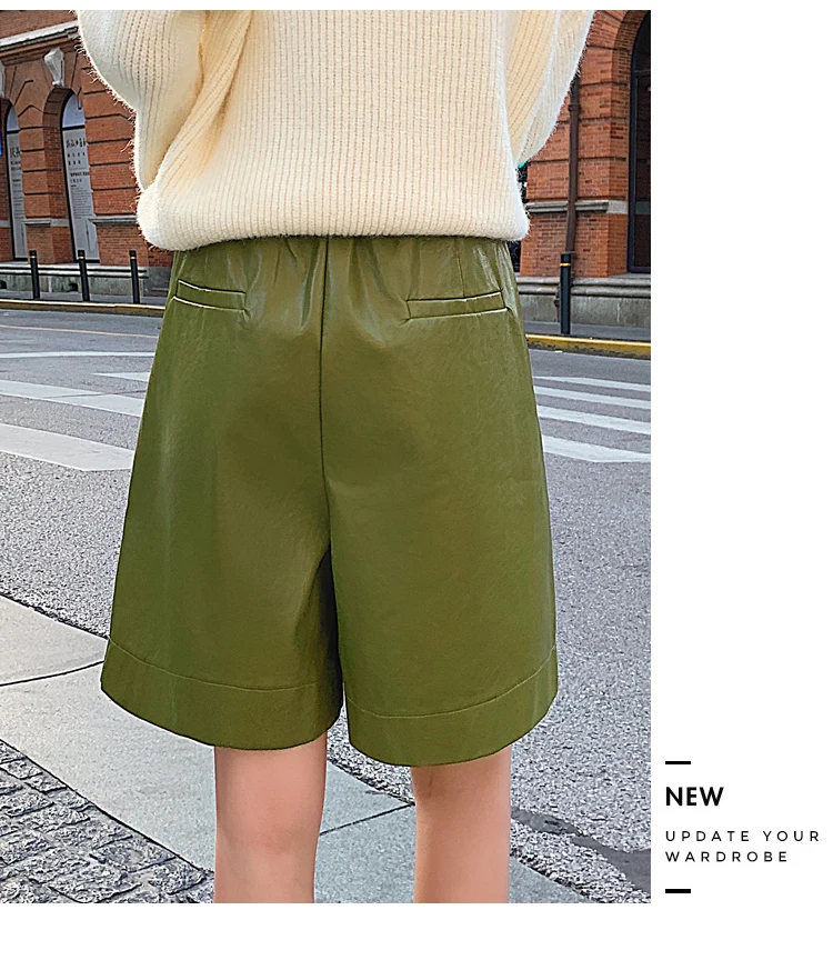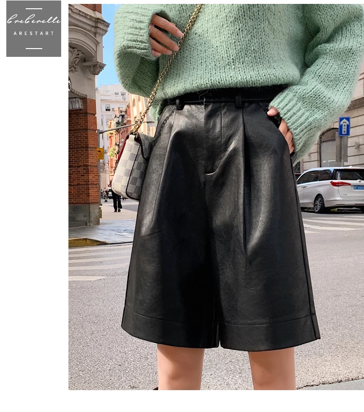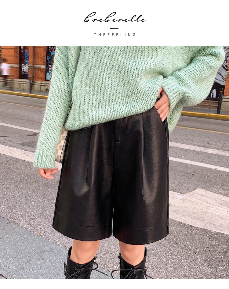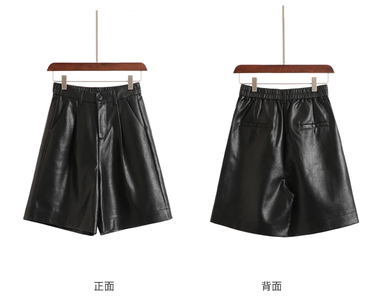 Модные женские шорты из искусственной кожи на осень и зиму, новая верхняя одежда, шорты с эластичным поясом, свободные кожаные брюки в пять точек