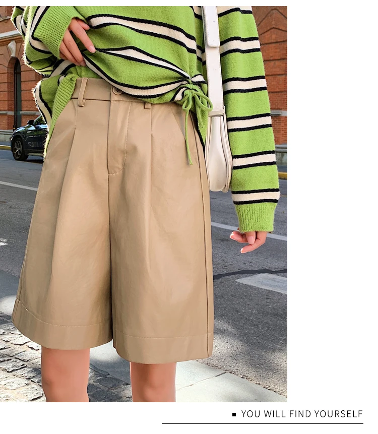 Шорты-бермуды из ПУ кожи с эластичным поясом, свободные кожаные брю...