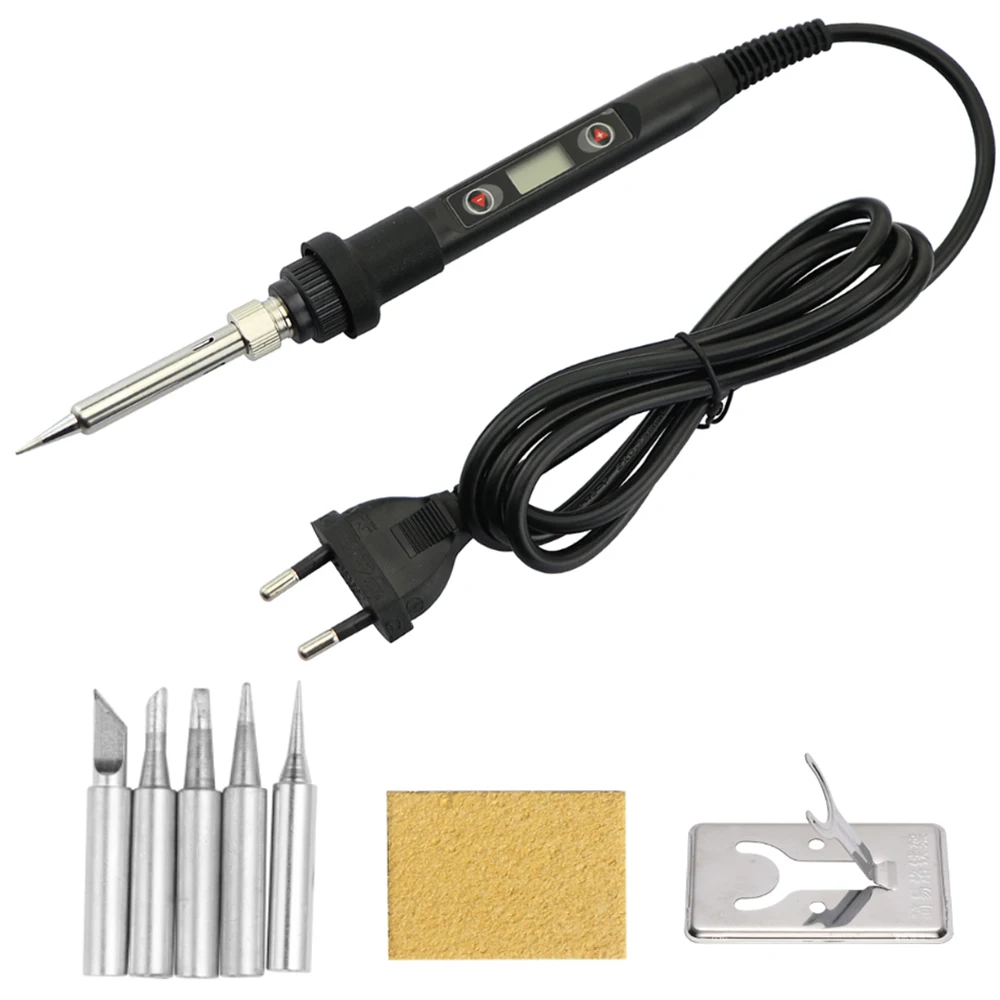 1 × 80 Вт ЖК-паяльник5 × наконечники паяльника (I / B / K /2.4D / 3C)1 × Подставка для пайки из нержавеющей стали1 × губка