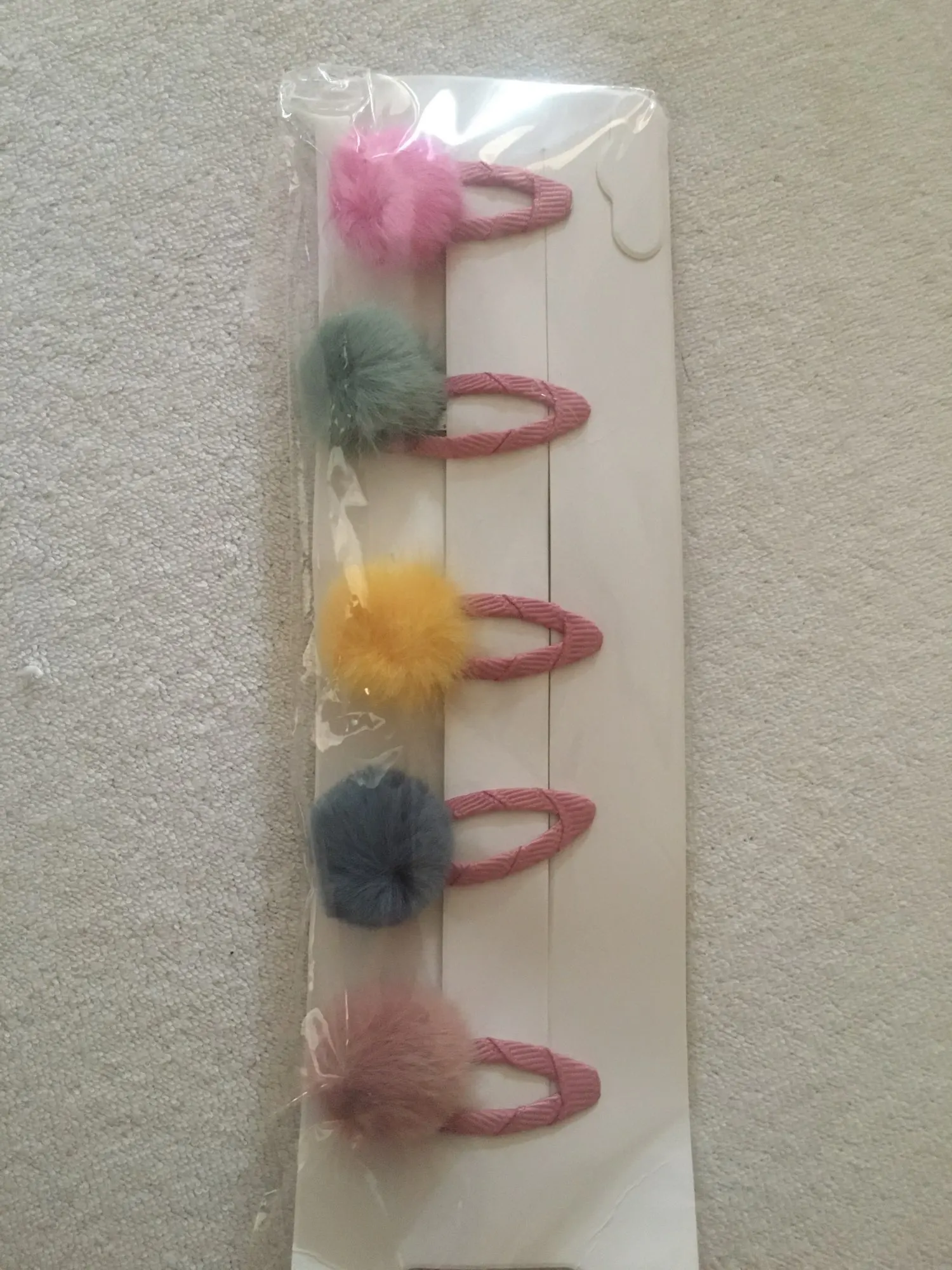 5 шт.компл., разноцветные заколки-плюшевая повязка для волос для девочек, пушистые шарики, разноцветные заколки, Детские милые головные уборы
