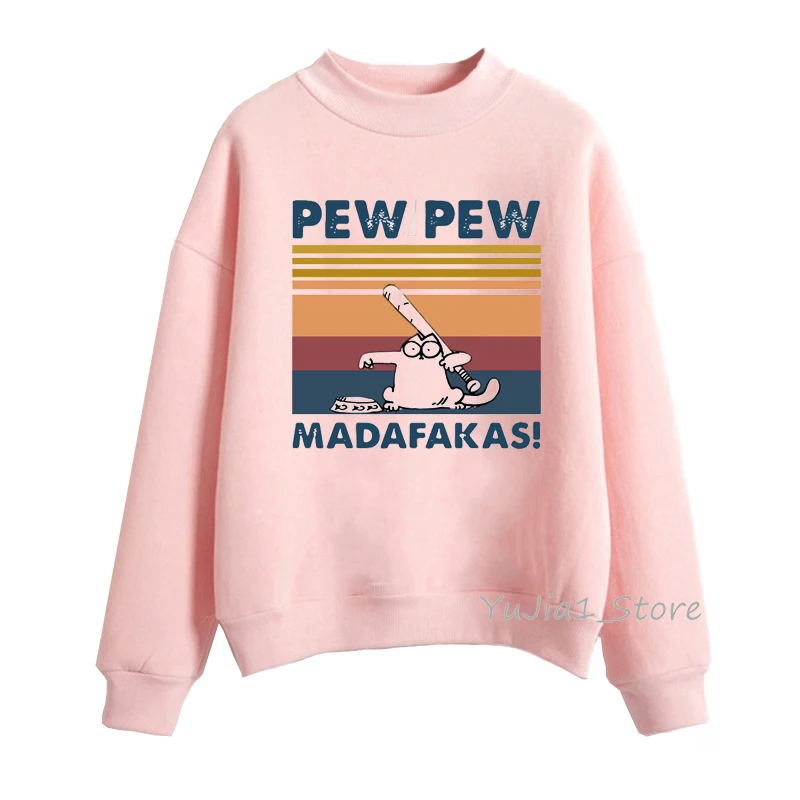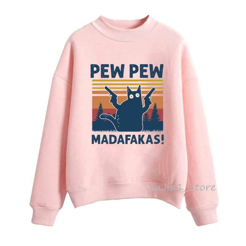 Черная кошка Pew Madafakas толстовки для женщин забавная кошка Гангстер с мемом пистолета Ретро Свитшот женский юмор подарок Женская толстовка