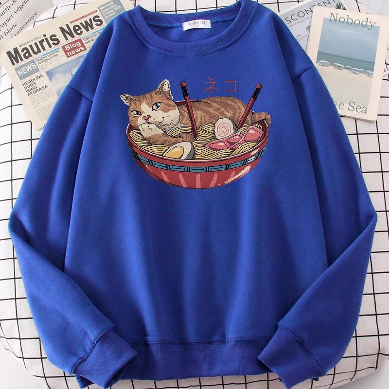 Neko Ramen Ukiyo-e Japan Comics Print Clothing Male Pattern Oversiz...