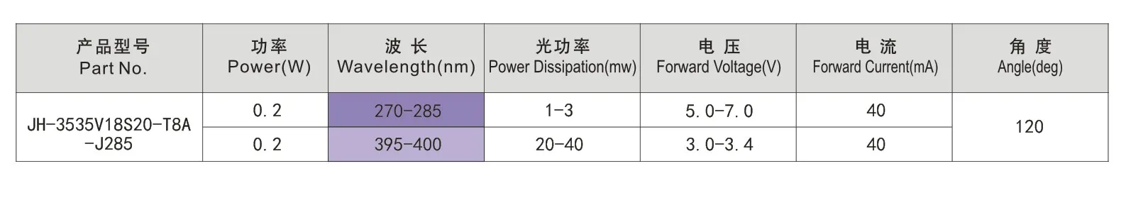 3535 SMD керамические подложки 0,2 W 270 275 280 285nm UVC led