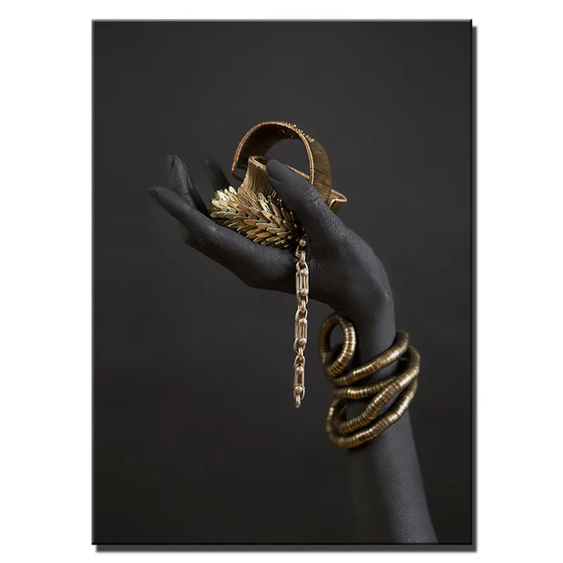Черная Женская рука с золотыми ювелирными изделиями, холст, настенн...