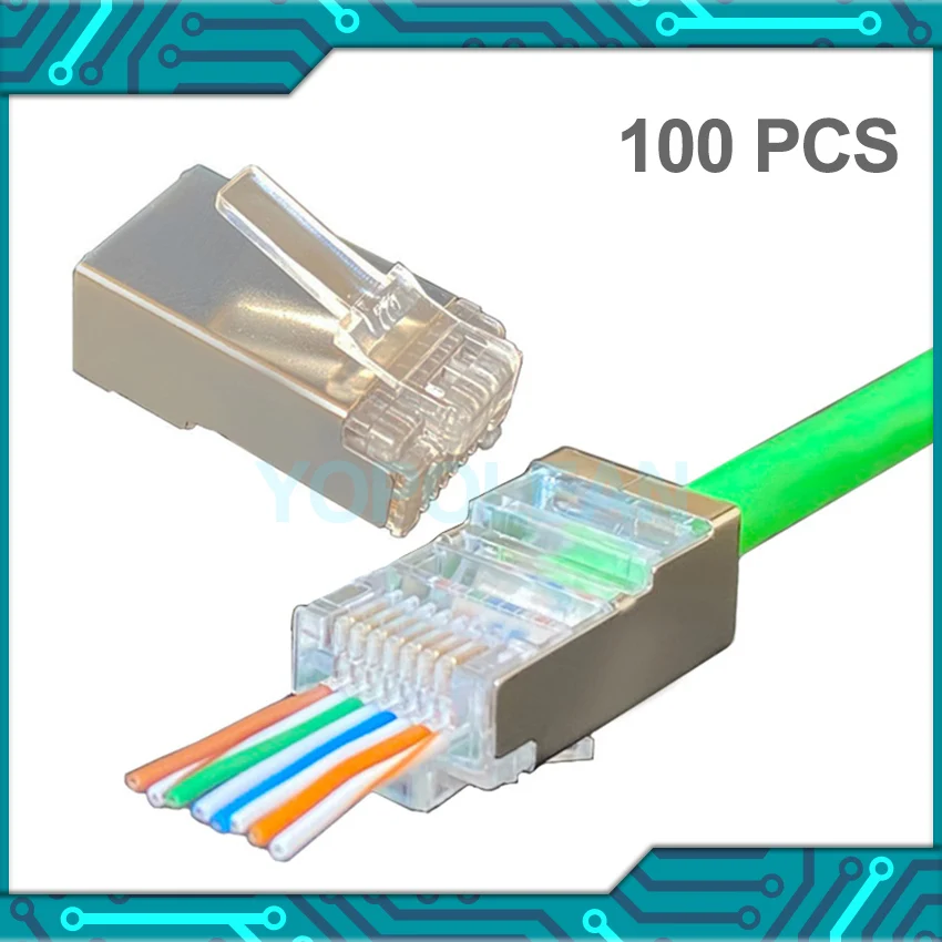 100 шт./лот Новый конец пропуска хотя RJ45 экранированный разъем cat5e Cat6 Сетевой разъем rj45 адаптер