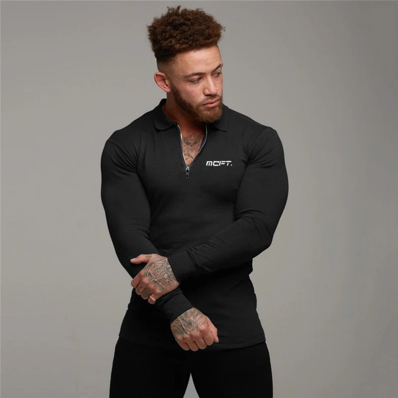 Брендовая дышащая Модная рубашка поло на молнии для спортзала Мужск...