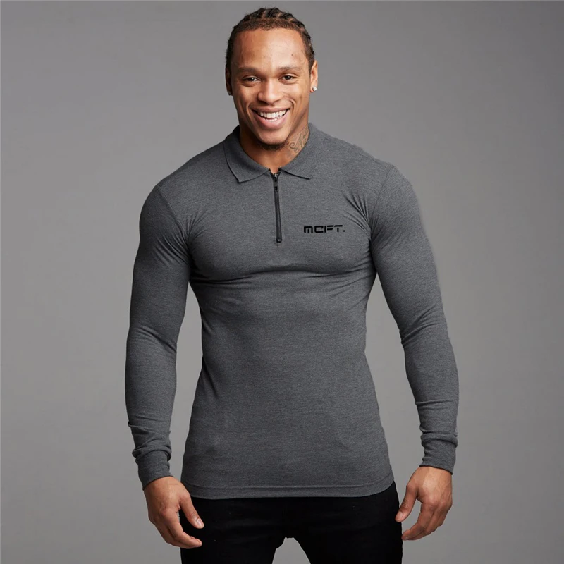 Рубашка-поло мужская с длинным рукавом, дышащая Спортивная, на молн...