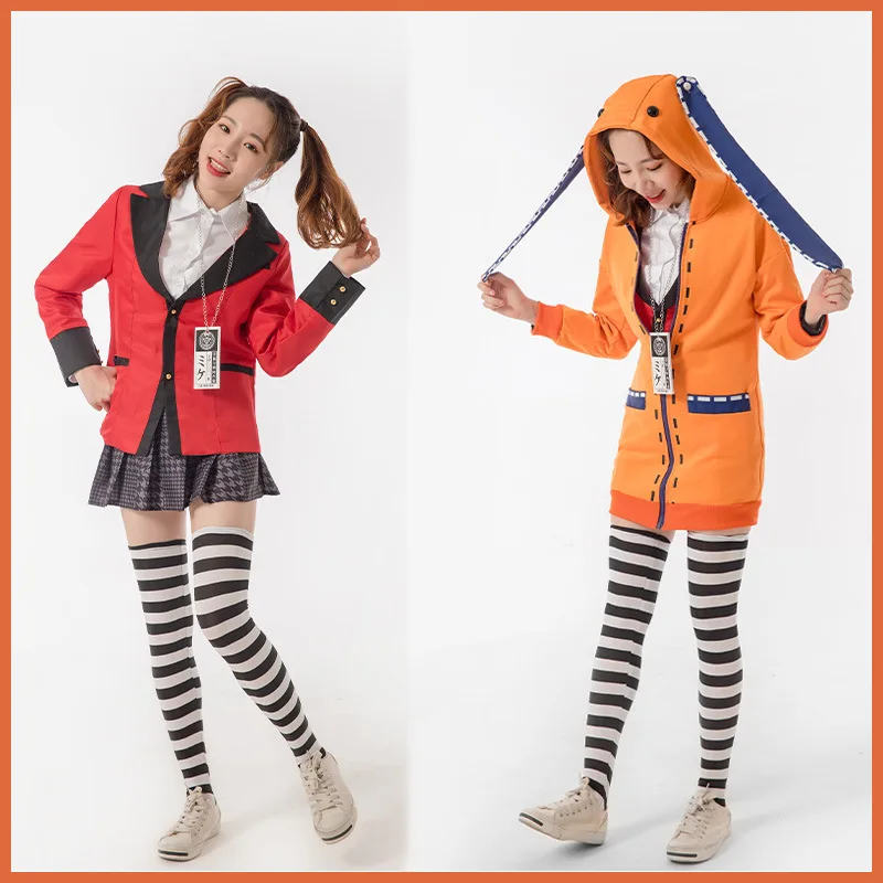 Костюм для косплея Yomoduki Runa Yumeko компульсивный игрок Runa Косплей парик и Оранжевая Куртка с капюшоном форма JK с парикамиЦвет: как на фото