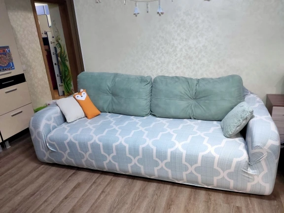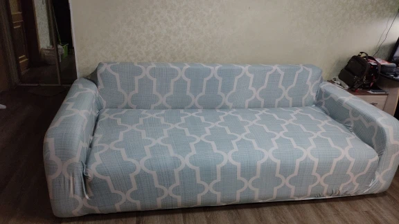 Покупали чехол на диван поскольку в доме завелась собака. Размер выбирала по таблице +1 размер, как советовали в отзывах, но всё равно оказалось мало. В стыках торчат паролоновые фиксаторы, и на боковинах дивана некрасиво вздернут чехол. Вывод - брать надо на 2 размера больше табличных данных. Ткань тонкая, эластичная, качество устраивает. Собаку всё устраивает)) и надеюсь диван спасти удалось, но за несоответствие размеров табличным данным ставлю 4
