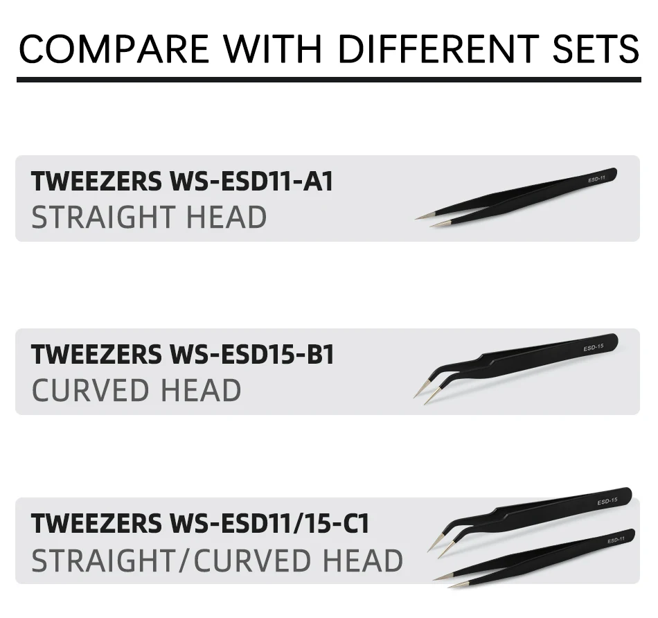 Пинцет WOSAI, изогнутый, прямой, антистатический, прецизионный, из нержавеющей стали, для ремонта телефонов, iPad, микросхем, материнских плат, ручные инструменты