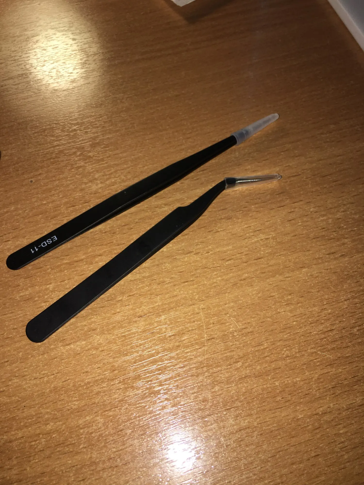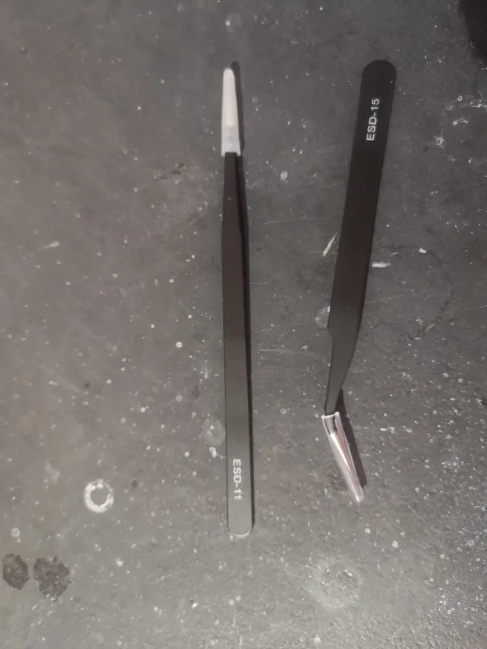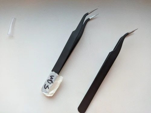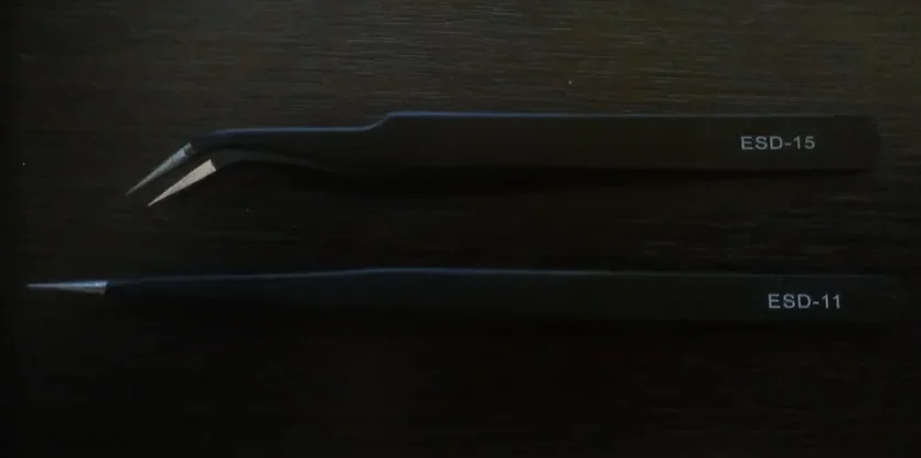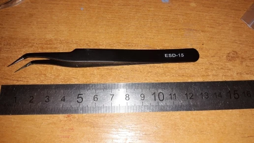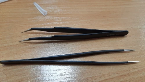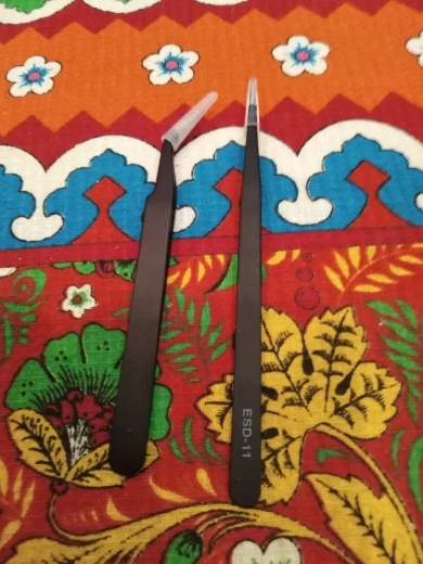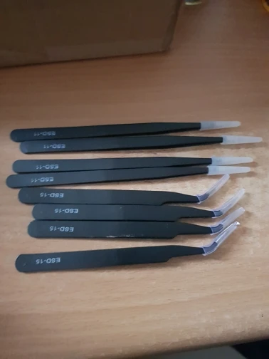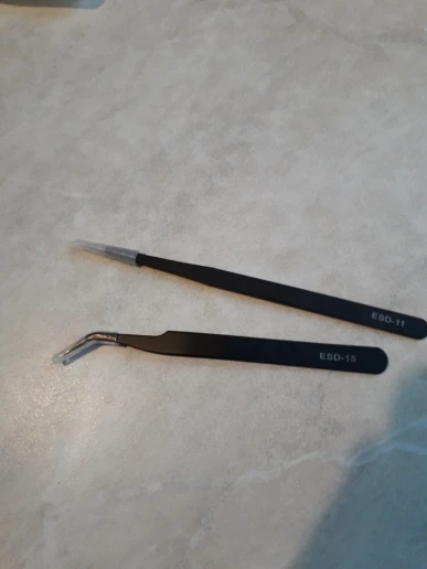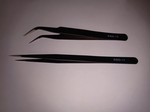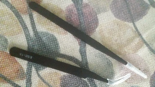нормальные пинцеты. концы тоненькие, острые, смд держат хорошо, жесткие - планку памяти за конденсатор поднимают легко. на пинцете с изогнутыми концами длина губок отличается на треть миллиметра, прямой пинцет идеальный.