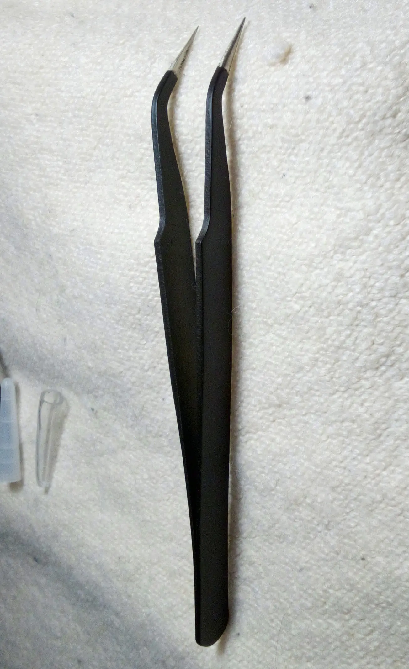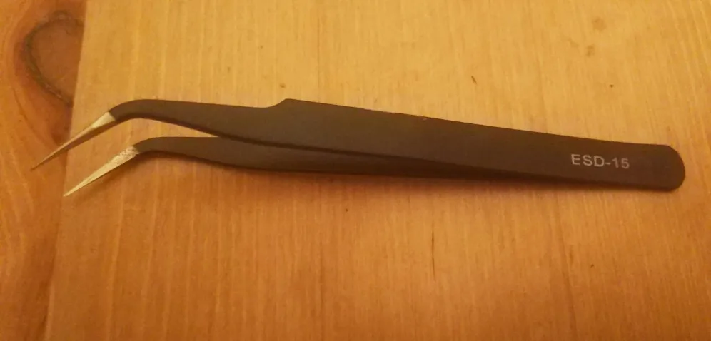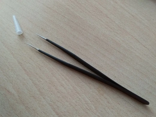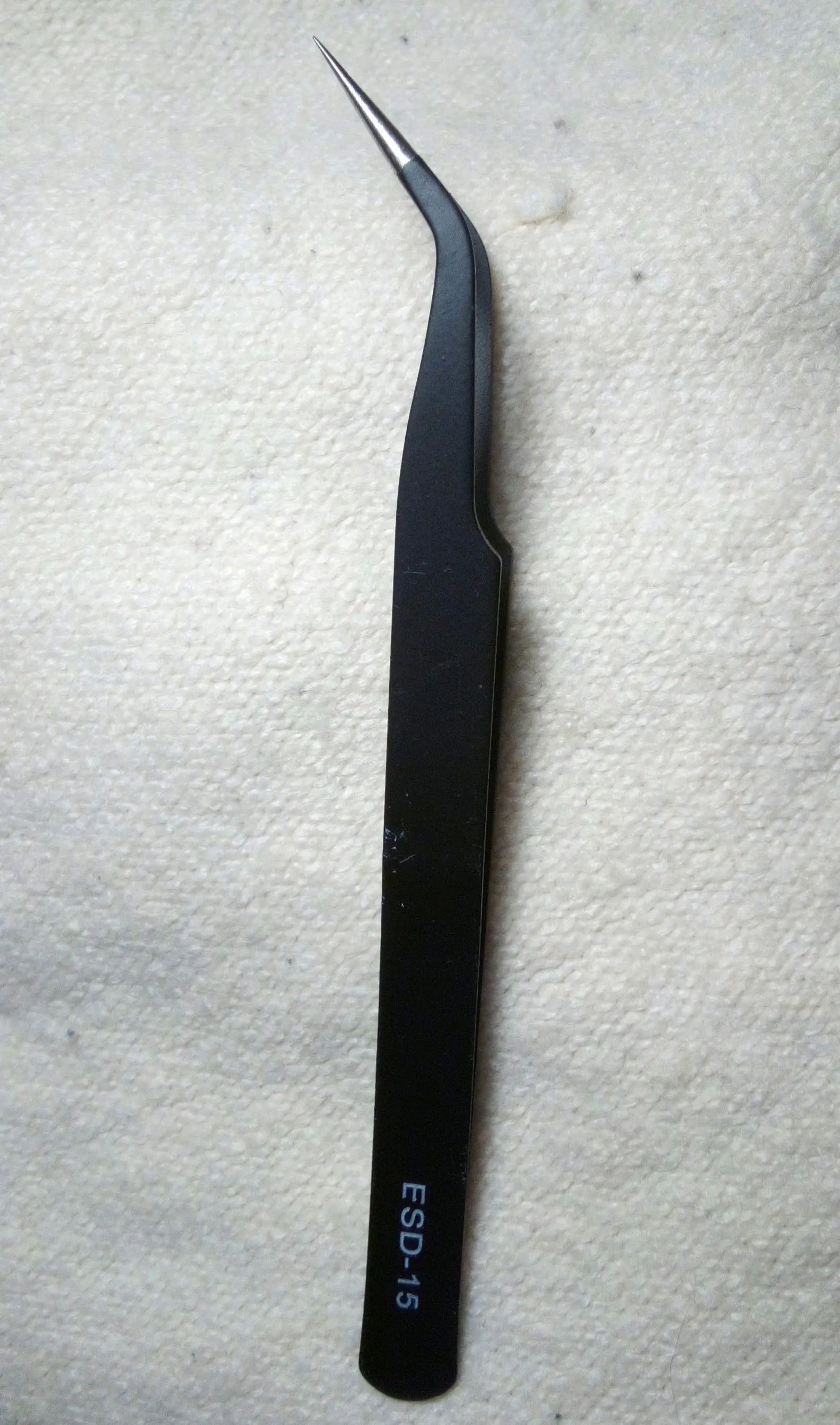 нормальные пинцеты. концы тоненькие, острые, смд держат хорошо, жесткие - планку памяти за конденсатор поднимают легко. на пинцете с изогнутыми концами длина губок отличается на треть миллиметра, прямой пинцет идеальный.