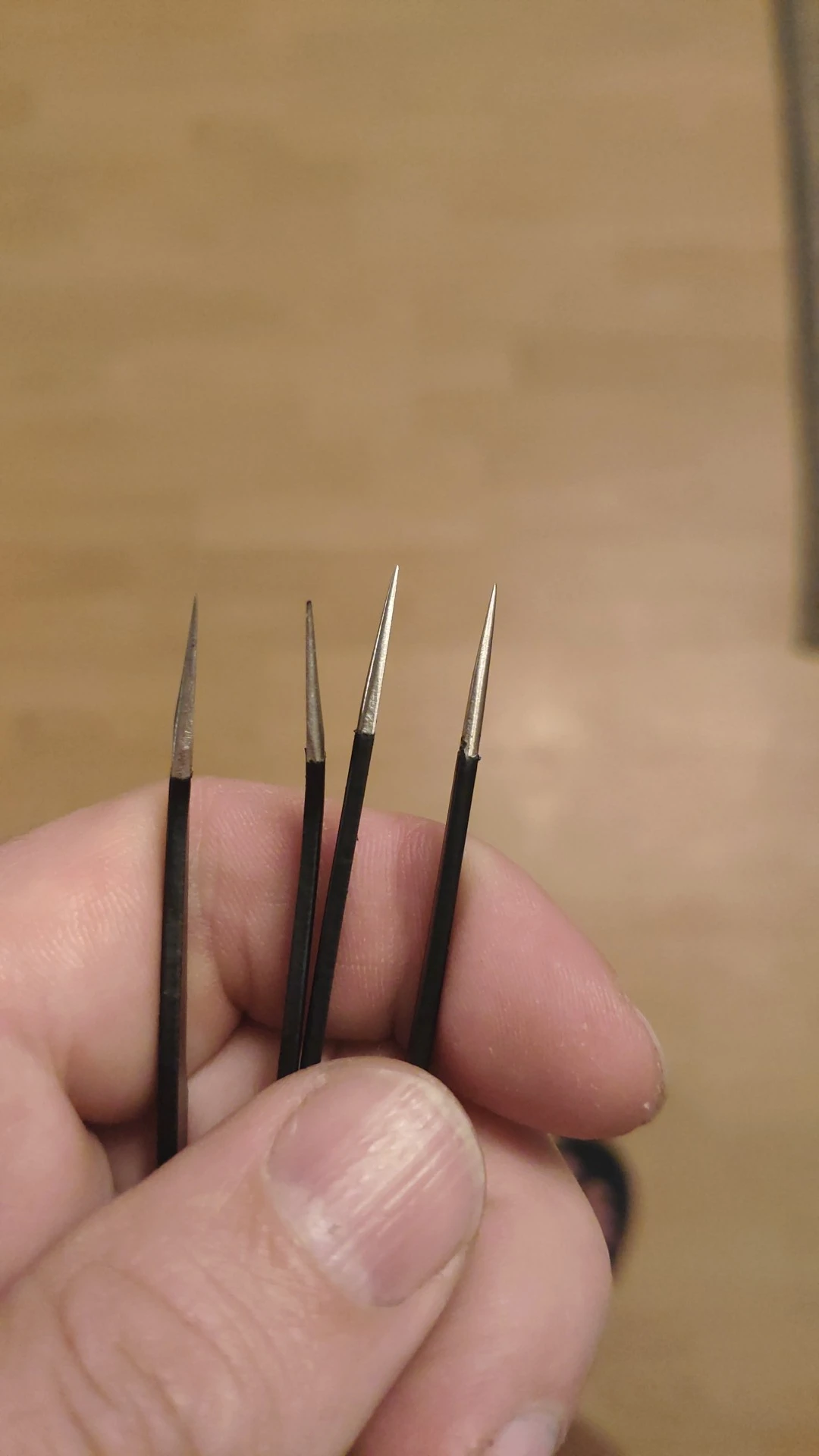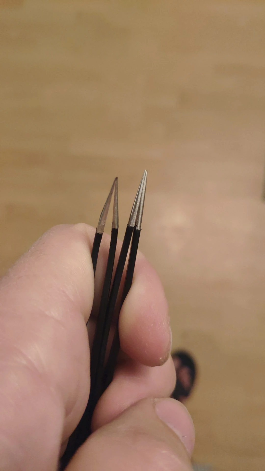 слева продавец wosai, справа jcd. слева взят за 64цента, справа 1.4$. от wosai выглядит лучше, чем дорогой jcd, думал будет наоборот. умеренно жесткие, концы острые, подогнаны хорошо. где погнуто - проверял на жесткость. для пайки и мелочи подойдут, брал с купоном. посылку обьединили, иначе бы ничо не пришло