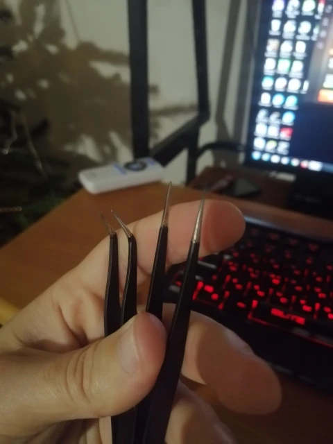 Очень долгая доставка. Сами пинцеты приемлемого качества с острыми кончиками, для SMD самое то