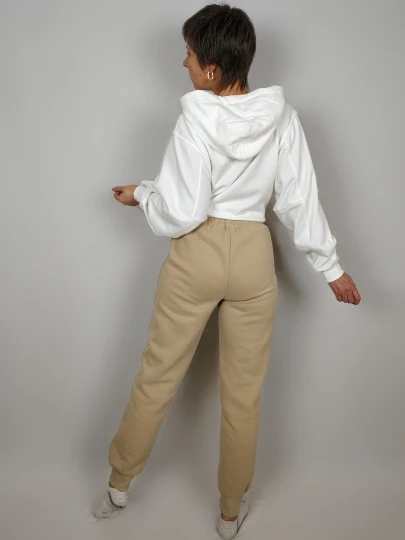 Присоединяюсь к общим восторгам. Заказала штаны, цвет бежевый, размер S. Мои параметры: рост 170 см, талия 66 см, бёдра 96 см. Сели отменно, не в облипку. В талии ещё место есть, можно затянуть кулисой, а вот по бёдрам я ничего менять не хотела бы. Брюки очень тёплые. Ветер их продувает, конечно, но не так, чтобы насквозь сифонило. Ткань плотная, толстая. Внутри флис, который скатывается и оставляет катышки на колготках и носках, если вы надеваете их вниз. На коже не оставляет. Меня этот момент вообще не волнует. Главное, снаружи катышков пока нет, а я из этих брюк не вылезаю с момента получения. Постирала, ничего не село и не деформировалось. Длина на рост 170 см идеальна. Карманы глубокие. Гладила один раз после стирки, штаны почти не мнутся. Мечта. Есть один минус - манжеты. Они слабые и тонкие, на них сэкономили. Этот факт известен и заметен только мне, поэтому тоже пофиг. Берите, не пожалеете.