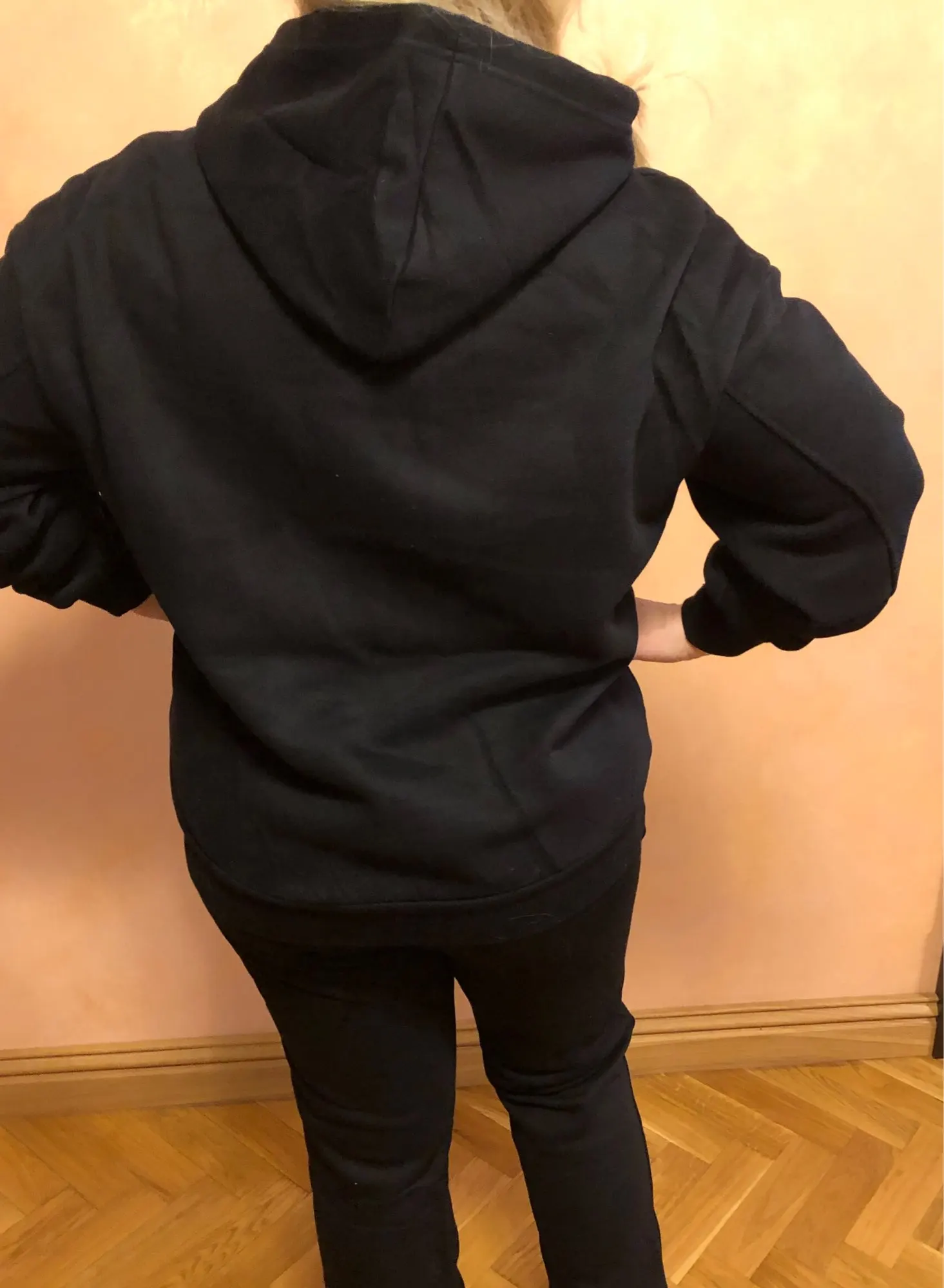 Классное худи, очень понравился. По качеству огонь. Но немного прогадала с размером, на ОГ90 ОТ66 заказала М, но можно было бы и S заказать. Ну ничего, буду и так носить. Спасибо продавцу за такой качественный товар