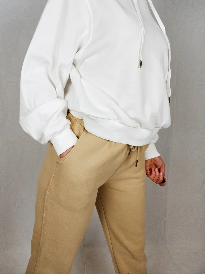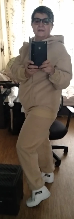Взяла третий костюм))) Два себе, один мужу. Качество отменное! на ОГ 98 верх себе взяла S- самое то,ОБ 106- xl. Замечательно,что можно брать отдельно по размерам. Единственное замечание - резинка на khaki выделяется другим цветом . Поэтому зелёный смотрится лучше,там все тон в тон. И размер зелёного свитшота немного длиннее,чем бежевого.