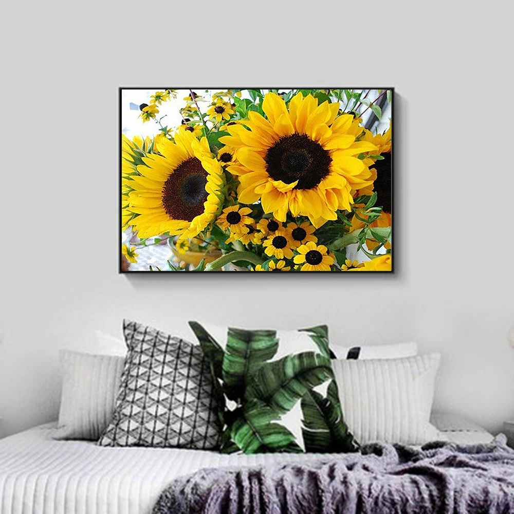 Квадратныекруглые настенные наклейки для домашнего декора HUACAN, Алмазное Рисование Подсолнечник