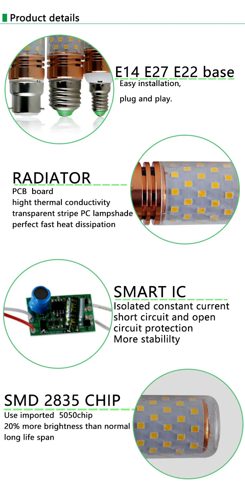 Особенности:С 60 светодиодами SMD 2835, ультра яркостью.Энергосбережение, низкое энергопотребление.Длительный срок службы, более 50000 часов.Защита для глаз, без стробов.Безопасно для использования, без излучения или элементов загрязнения.Высокое качество, стабильная производительность.Легко установить, просто подключи и играй.Подходит для паба, выставки, офиса или домашнего использования.Характеристики:Светодиодный: 2835 SMD СВЕТОДИОДНЫЙКоличество из светодиодный Чипы: 60Светильник Цвет: теплый белый 3000 К/белый 6000KЛюмен: 1220-1290LMТип цоколя лампы: E 27 / E14 / B22Рабочее напряжение:Ac dc 12v постоянного тока до 40v включают в себя 12v 24v 36vDc 12v постоянного тока до 60v включают в себя 12v 24v 36v 48v 60vAc 86-265v включает 90v 110v 220v 240vМощность: 12 ВтУгол луча: 360 градусовМатериал: PC + ALРазмер изделия: 29*90 мм (макс. Диаметр * высота)Вес изделия: 38 гРазмер посылка: 4*4*10 см/Посылка Вес: 48 граммПосылка включает:2 * светодиодный светильник