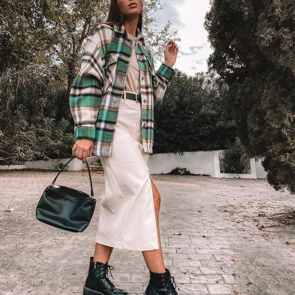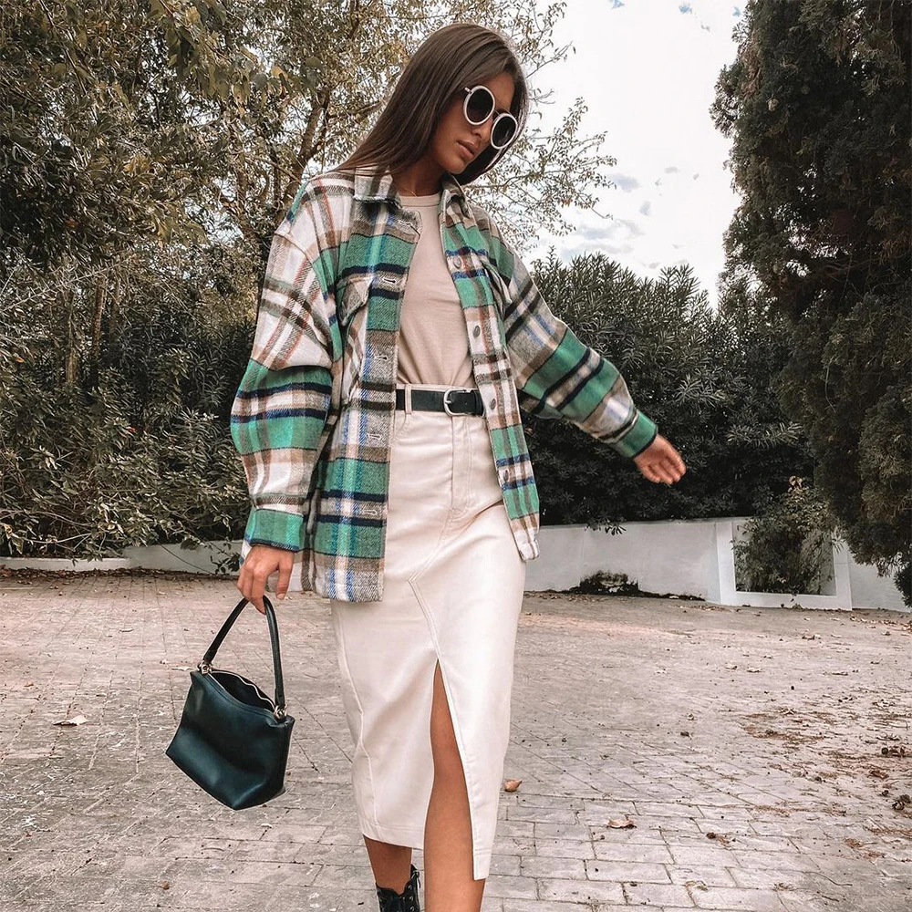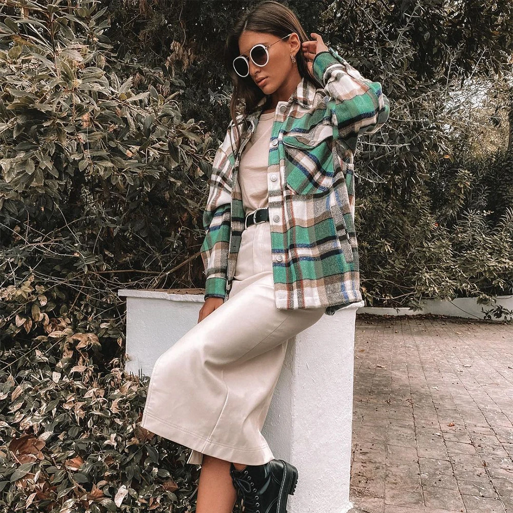 Женская винтажная клетчатая куртка, Классический жакет в клетку с длинными рукавами и отложным воротником, 2020