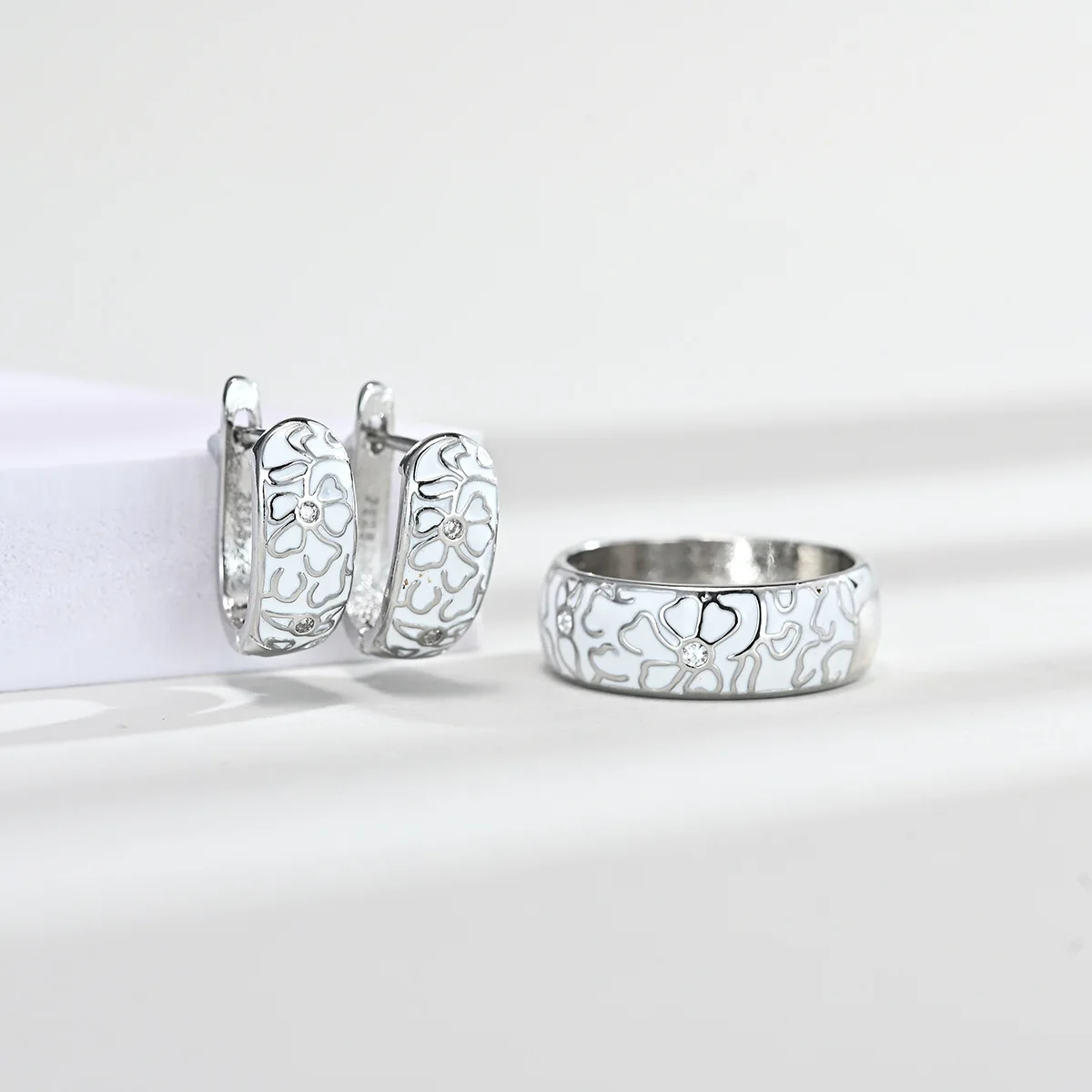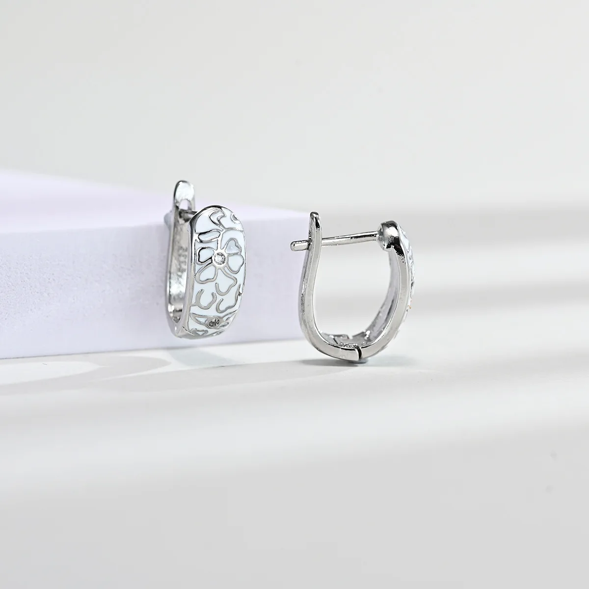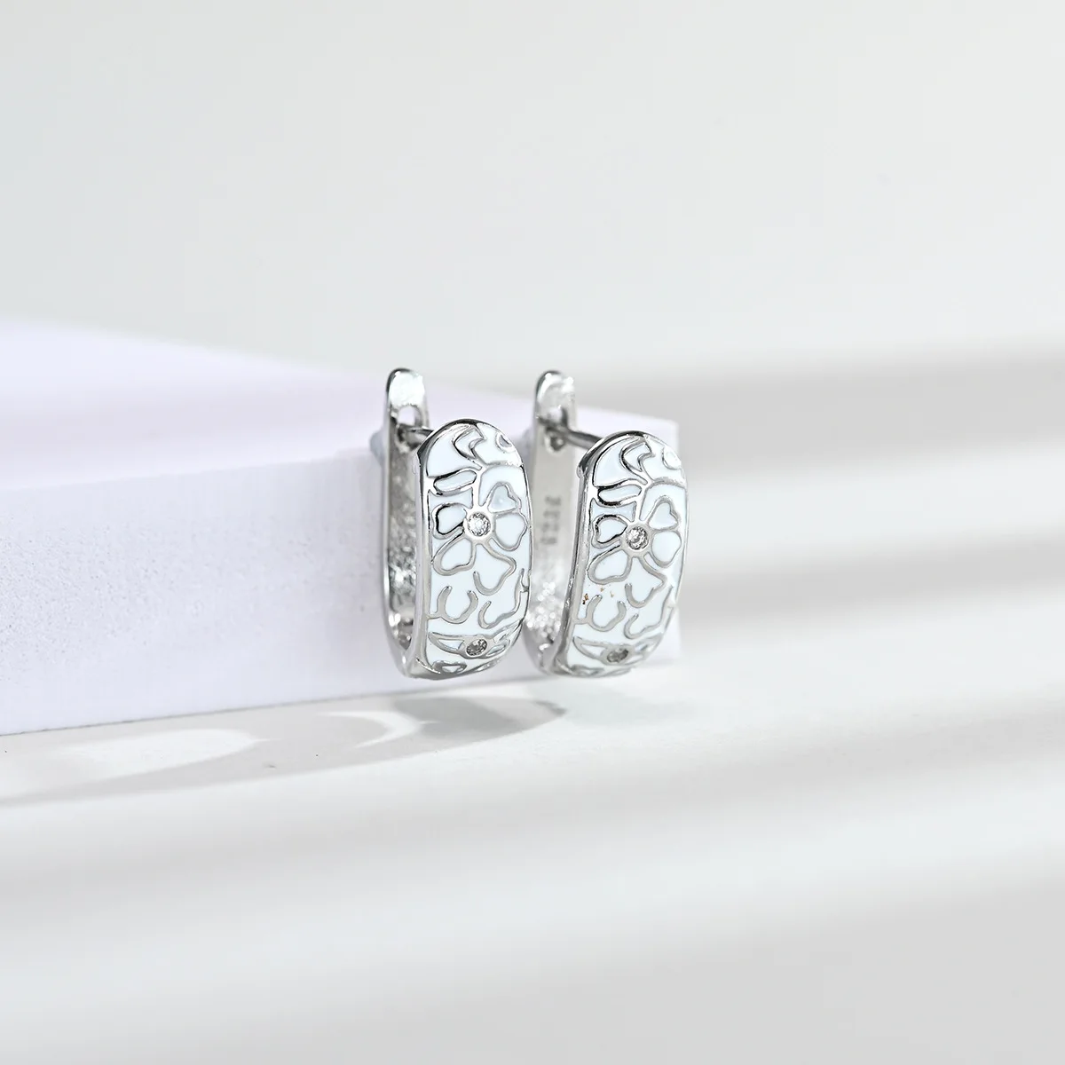 Черный Ангел Белая эмаль цветы Клипсы Серьги 925 серебряные серьги 2020 новые для женщин модные ювелирные изделия оптом
