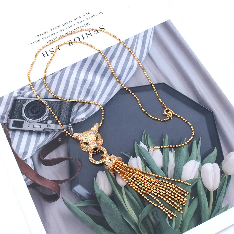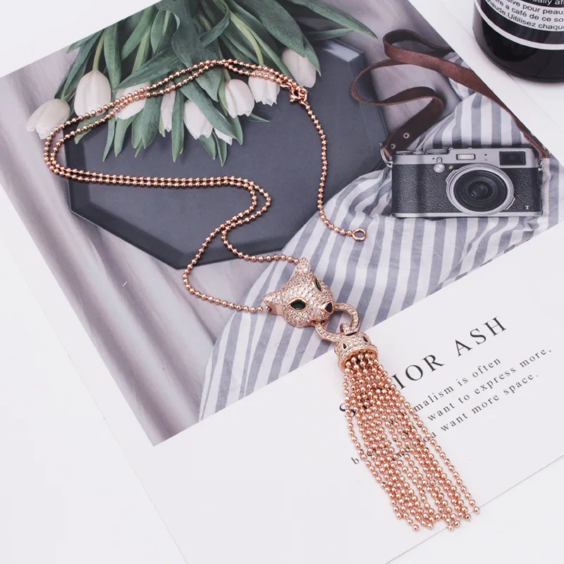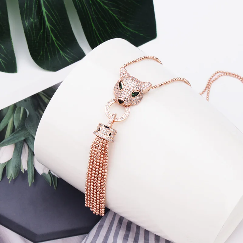 Бусины в форме головы леопарда, подвеска с кисточкой, кубический цирконий, искусственное животное для женщин, дизайнерские медные украшения