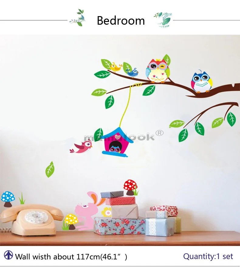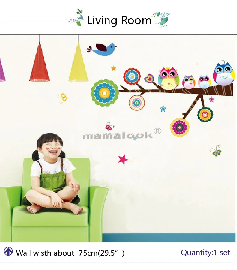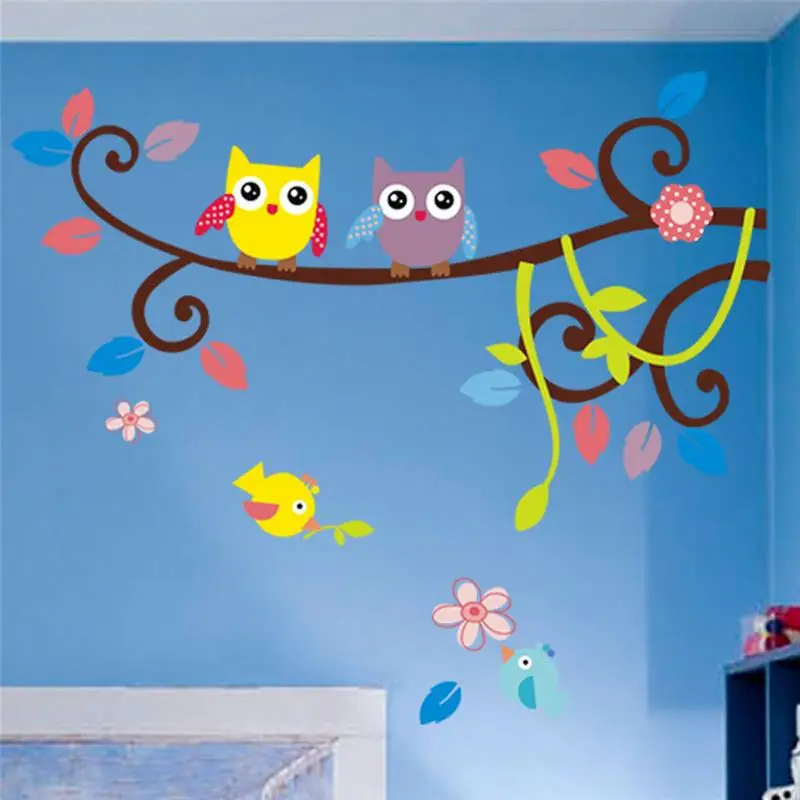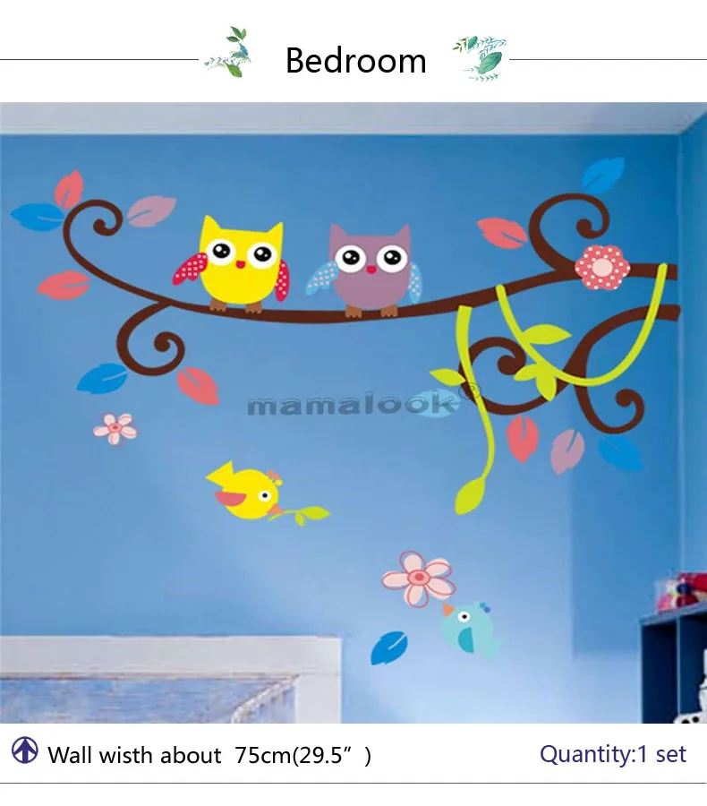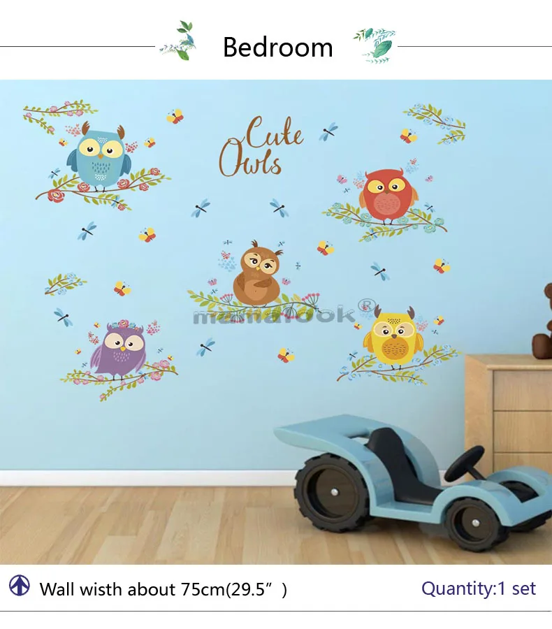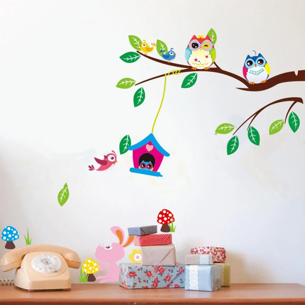 Милая совка на ветка дерева Наклейка на стену Наклейка для детского сада детская комната фестиваль украшение Мультфильм Сова Птица роспись искусство Сделай Сам домашняя наклейка