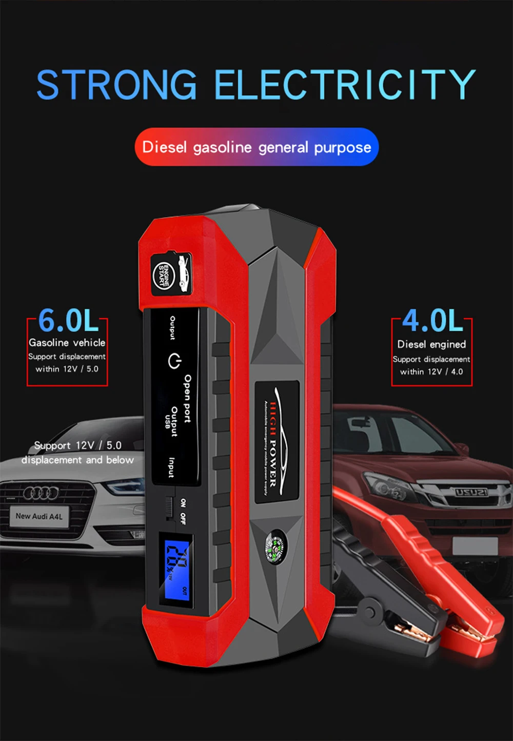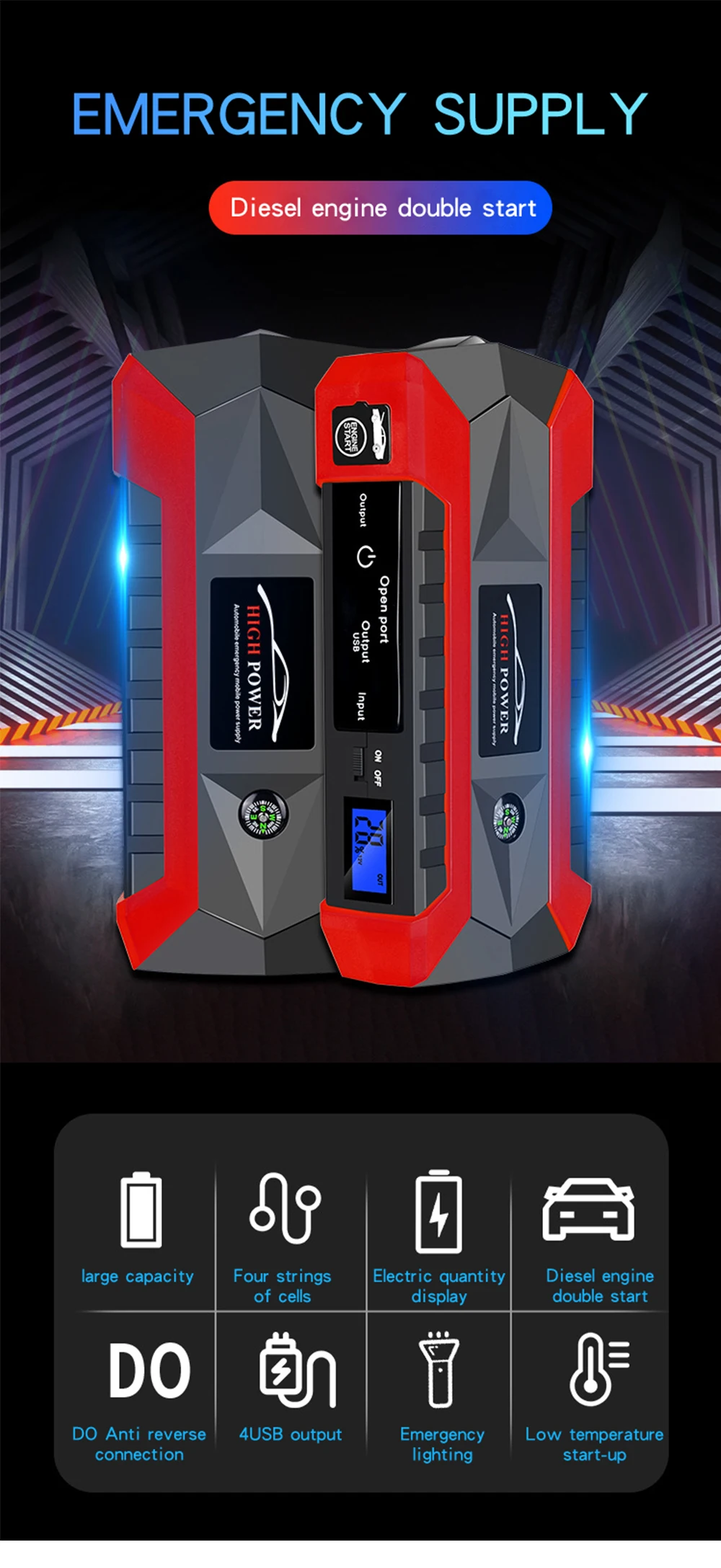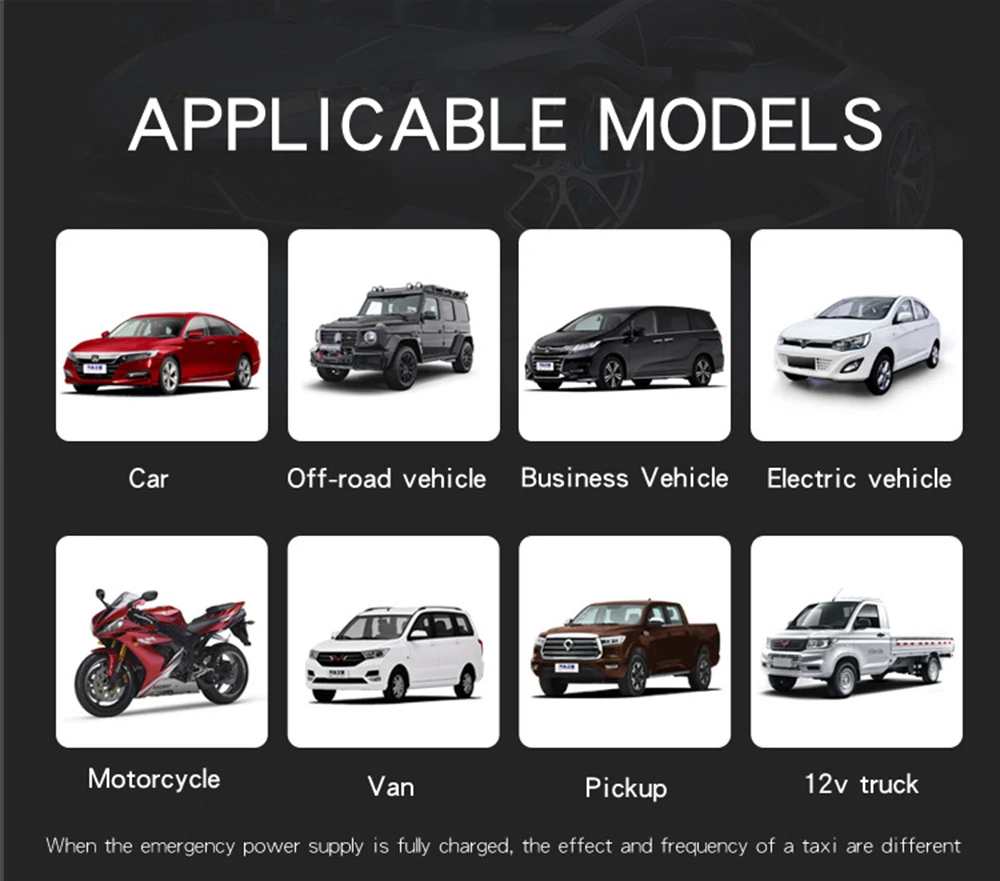 Применимый тип транспортного средства: 600A для пикового тока, запуск бензиновых автомобилей 6.0L или ниже, запуск для дизельных автомобилей 4.0L или ниже