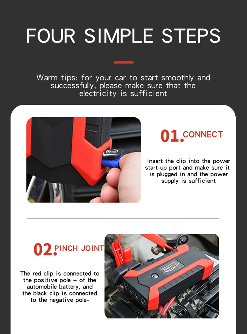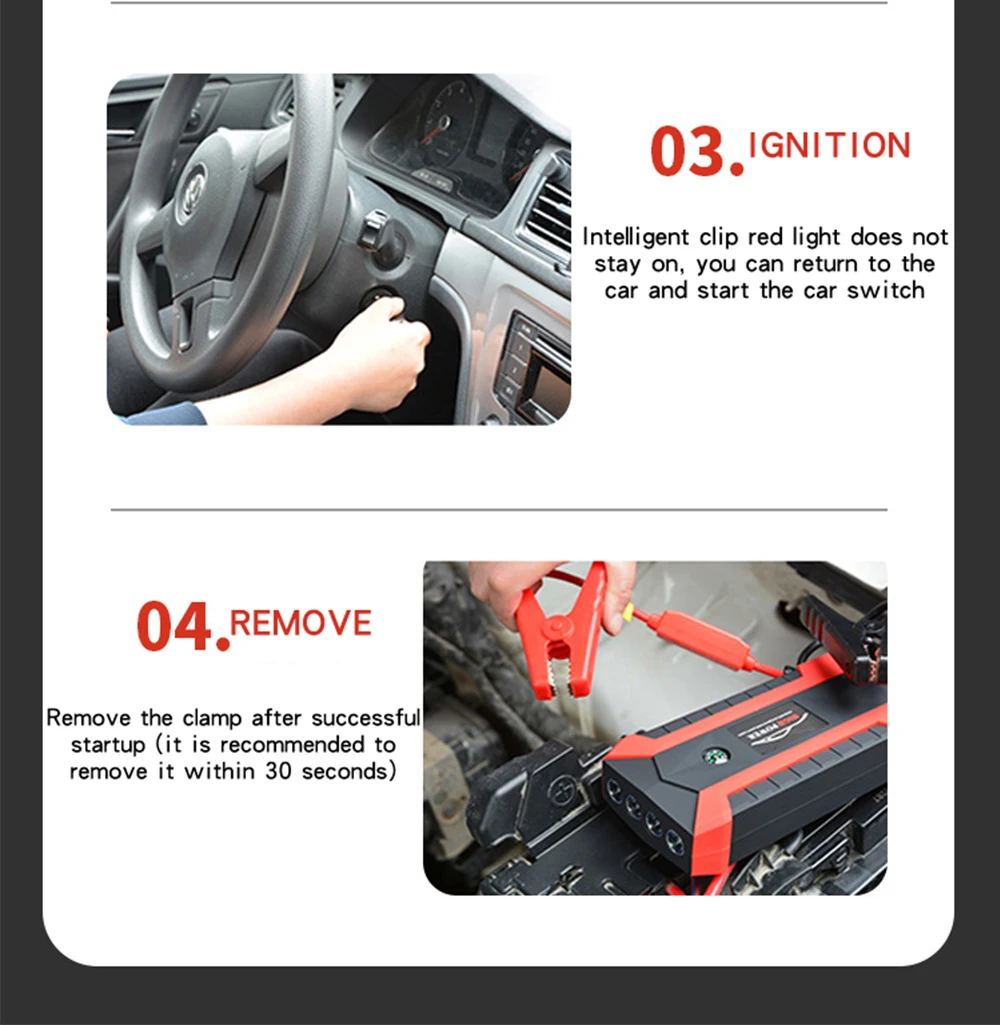 7. Нет необходимости в установке, нет необходимости в настройке, просто используйте зажим для подключения автомобиля положительного и отрицательного,