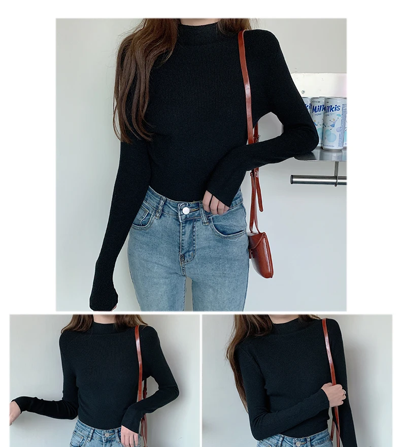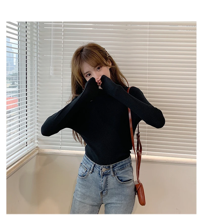 Модные однотонные белые и черные топы, Свитера 2020, зимние водолазки с длинным рукавом, пуловеры, женские свитера, женская одежда, S-06 100