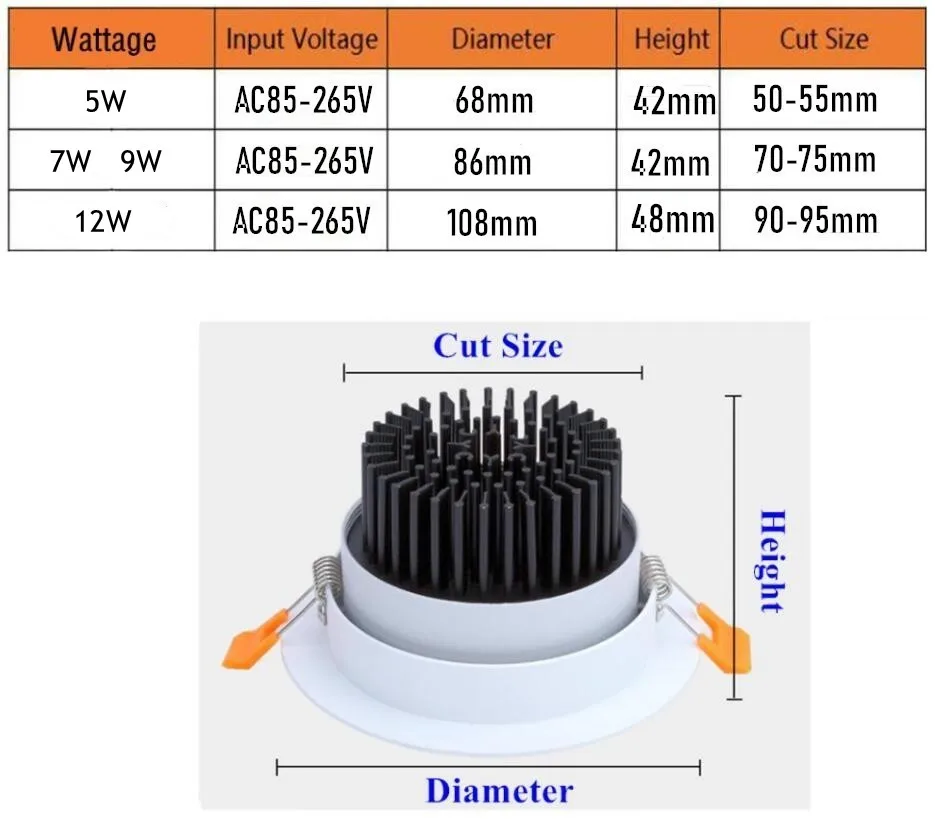 Мощность: 5 Вт 7 Вт 9 Вт 12 Вт