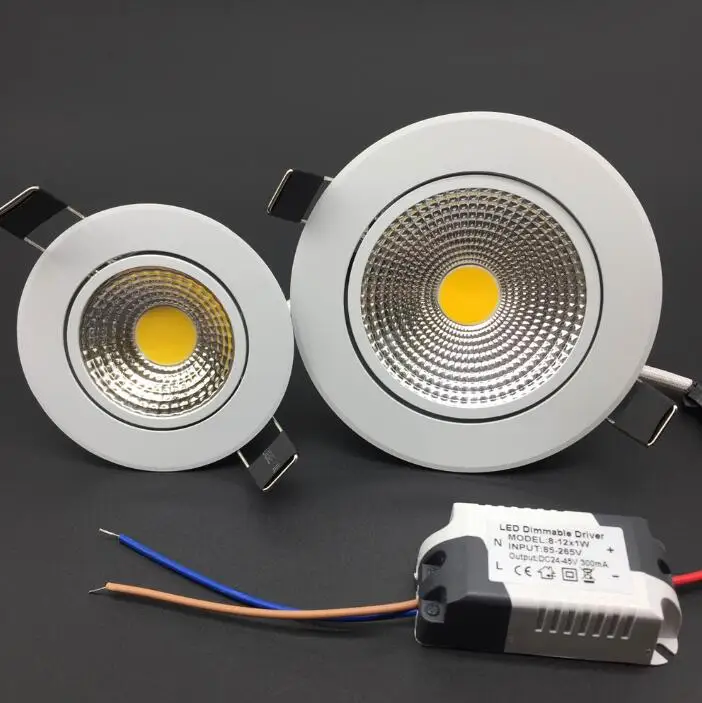 Приглушаемый Светодиодный точечный светильник, потолочный Точечный светильник с COB матрицей, 5 Вт, 7 Вт, 9 Вт, 12 Вт, 85-265 в, потолочный утопленный светсветильник льник, светильник нее освещение