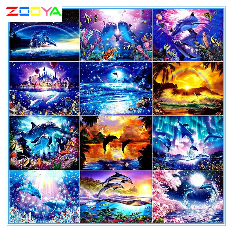 Полноразмерная Алмазная 5D картина сделай сам, дельфин, Алмазная мозаика, океанический пейзаж, 3D Алмазная Вышивка крестиком, домашний декор, искусство Lx932