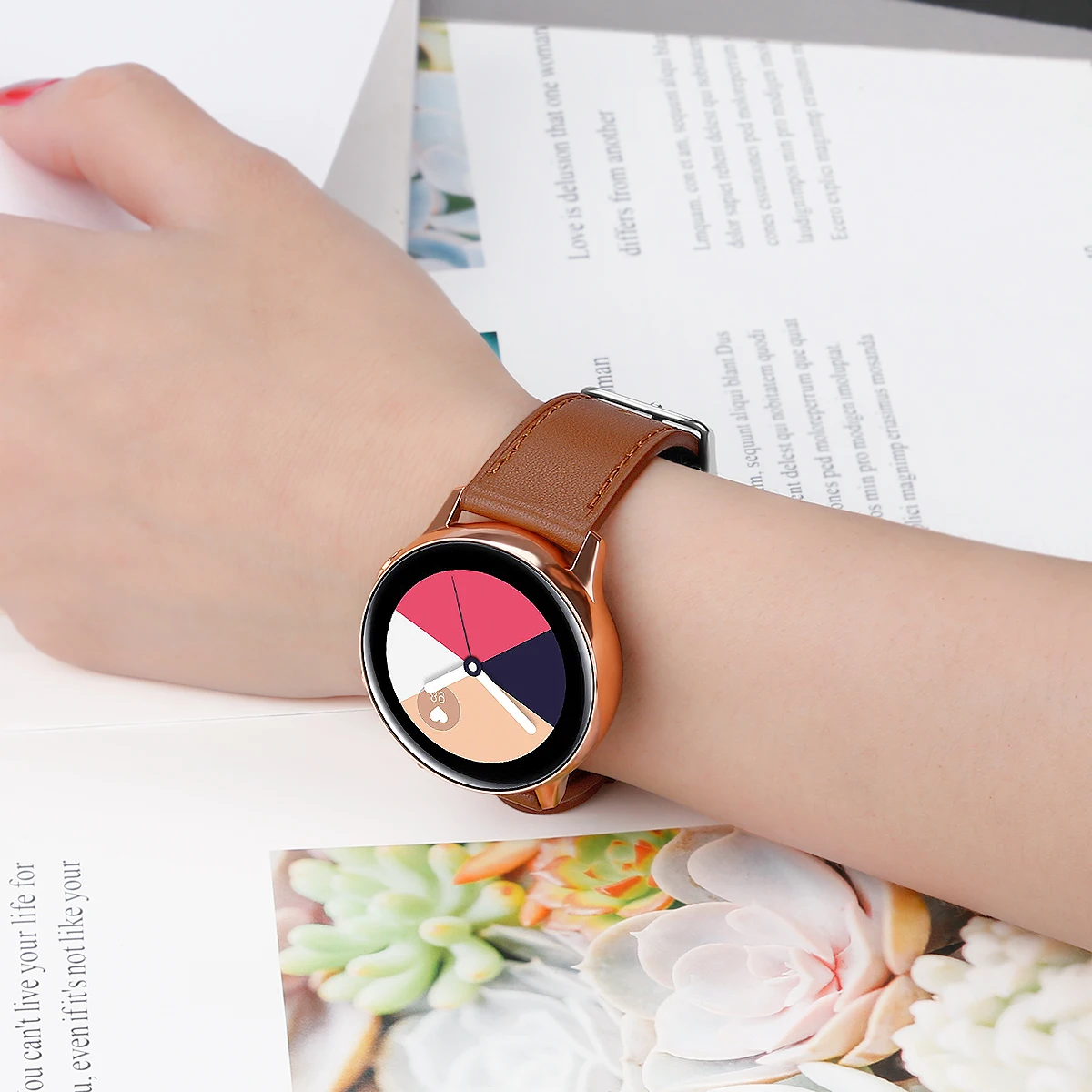 20 мм, 22 мм, ширина, быстроразъемный цветок, ремешок из натуральной кожи, совместимый с Samsung Galaxy Watch 3, 45, 41 мм, 4G LTE/Bluetooth/Titan версия, сменные полосы для женщин, мужчин, девочек, мальчиков, больших и маленьких. Характеристики> [Двухсторонняя натуральная кожа] Galaxy Watch active /active 2 40 мм 44 мм ремешки из кожи, смешанные с высококачественной пряжкой из нержавеющей стали, Многоэлементная комбинация, стильная и удобная, легко носить и регулировать длину, делает Samsung gear sport модным, благородным, долговечным и элегантным. [Простая установка] этот универсальный быстросъемный ремешок 20 мм 22 мм подходит для запястья: 15 см (5,9 дюйма)-20 см (7,8 дюйма). Никаких инструментов не требуется. Супер легко установить и изменить размер и удалить. Просто вставьте в Слоты часов.