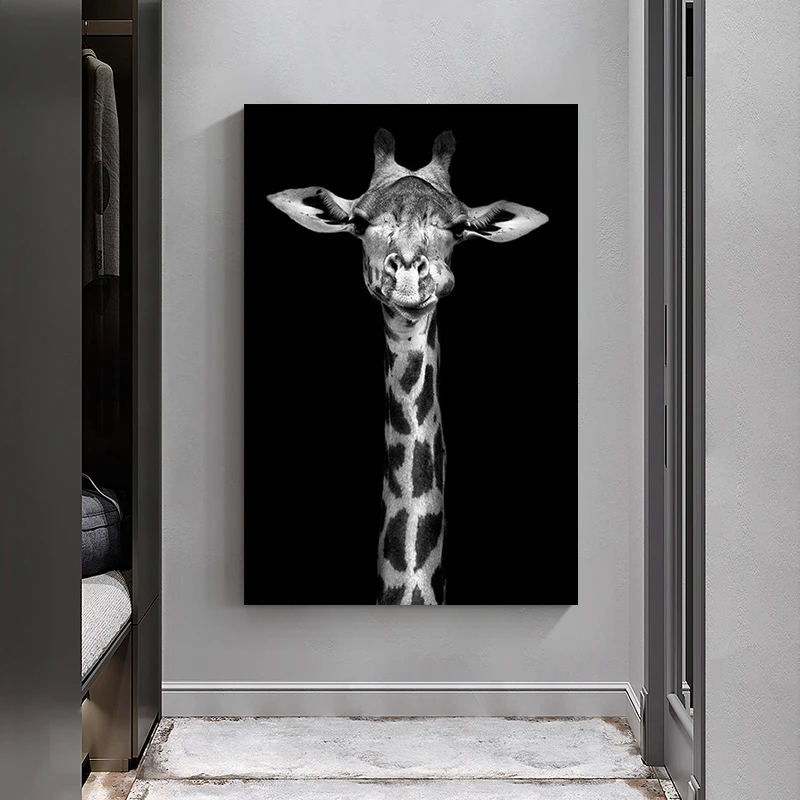 Слон Зебра Лев Жираф носорог черный белый животное холст картина ху...